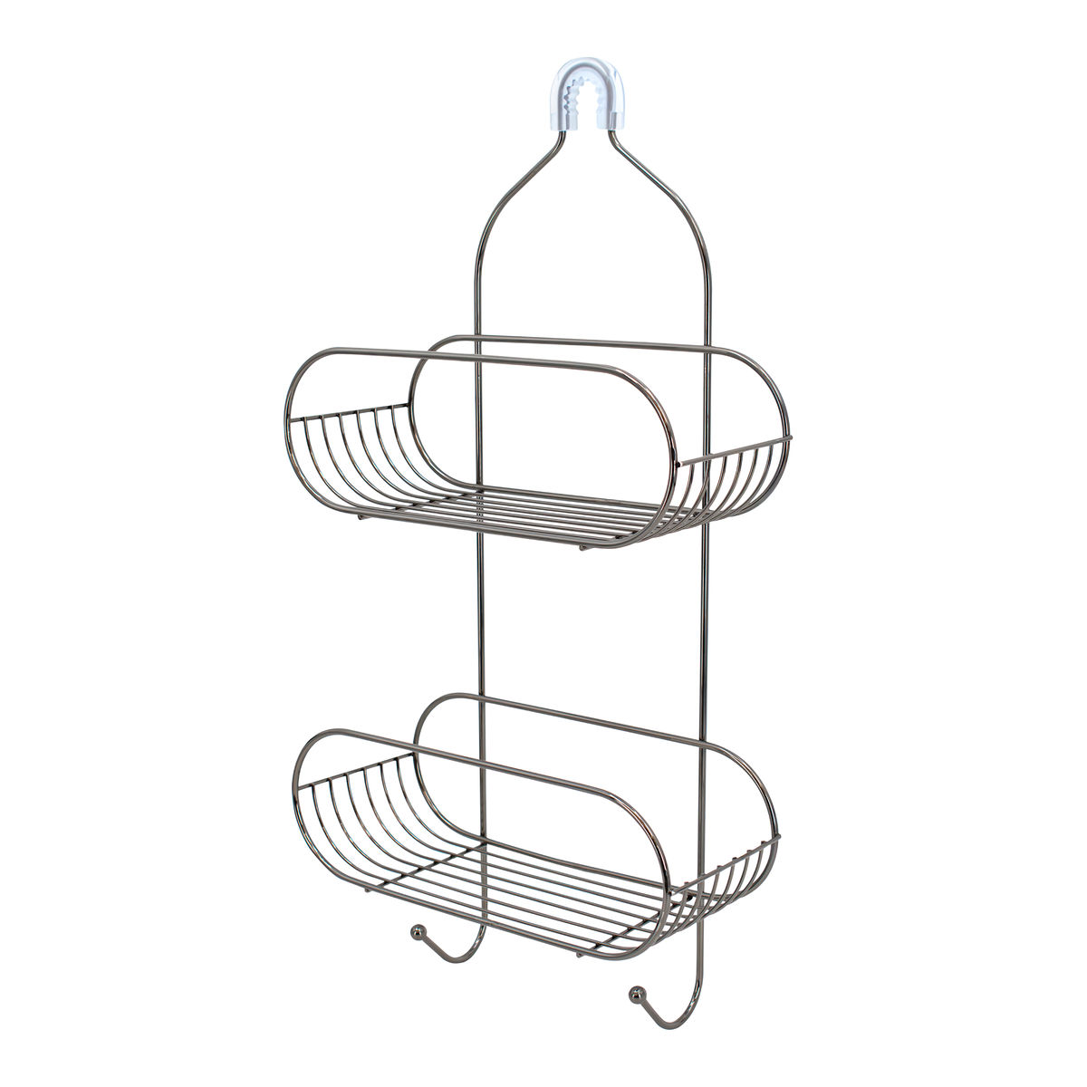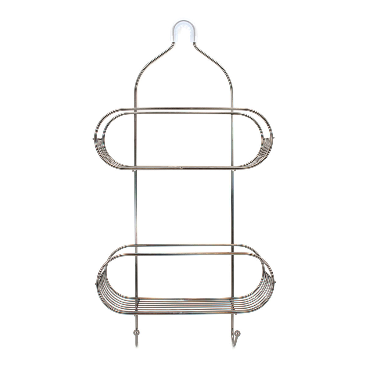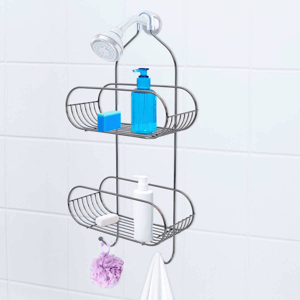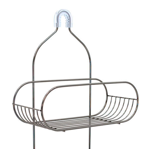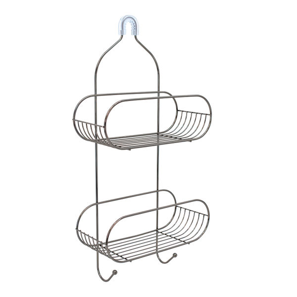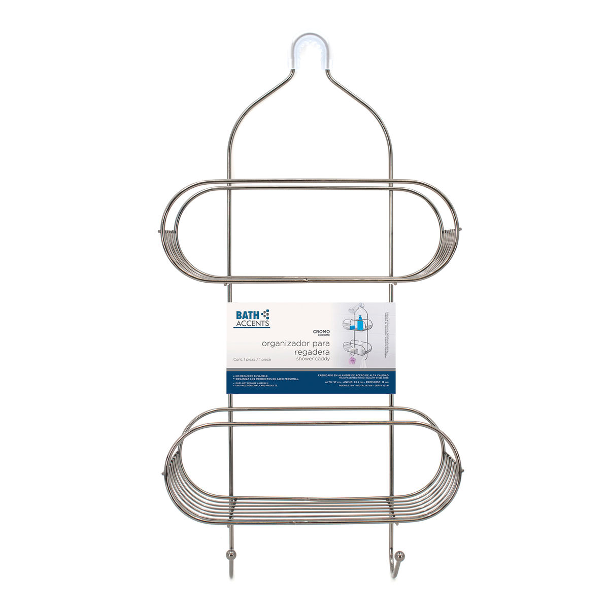 Organizador para regadera Bath Accents, permite una mejor distribución de los productos de higiene personal mientras los pone a la mano del usuario al momento de ducharse, a la vez que aporta modernidad y máxima funcionalidad al cuarto de baño. Su cuerpo está fabricado en alambre de acero resistente con acabado cromado y consta de una estructura de rejillas para evitar encharcamientos, así como dos repisas para colocar shampoo, jabón de barra, acondicionador, exfoliantes y más, así como dos ganchos inferiores para colgar esponjas, cepillos o estropajos. Sus medidas son amplias, de 57 x 28.5 x 12 cm, tiene un collar de goma en el cuello que le brinda mayor firmeza y evita que se derrape, y su instalación es sencilla, ya que no requiere ensamblaje.