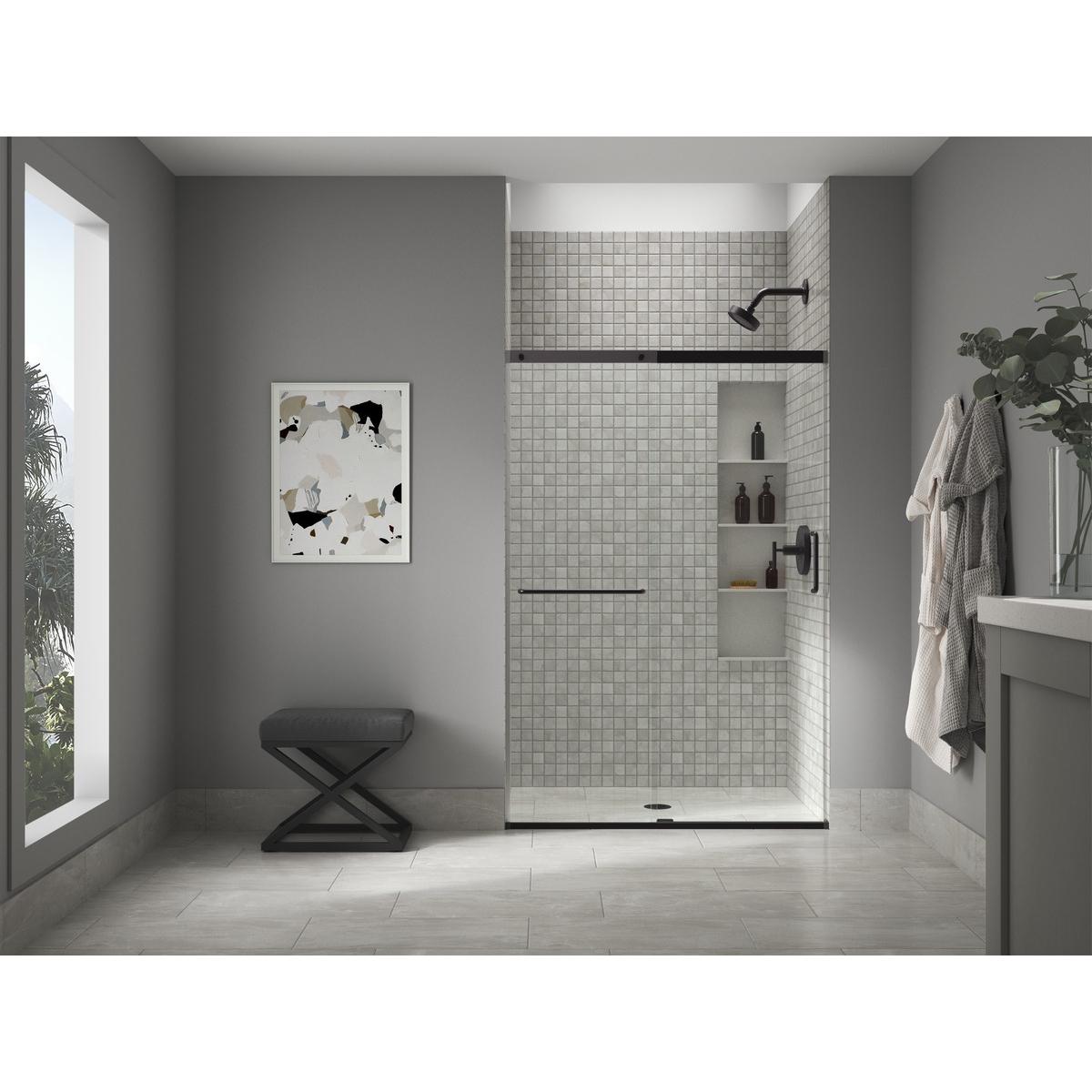 CANCEL PARA BAÑO VIDRIO TEMPLADO NEGRO CON TOALLERO PUERTA CORREDIZA 150 X 188 CM