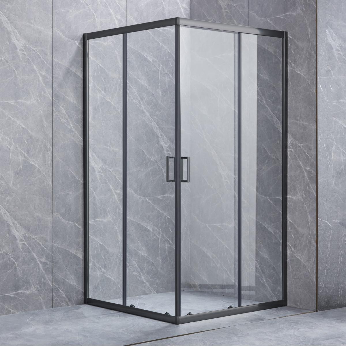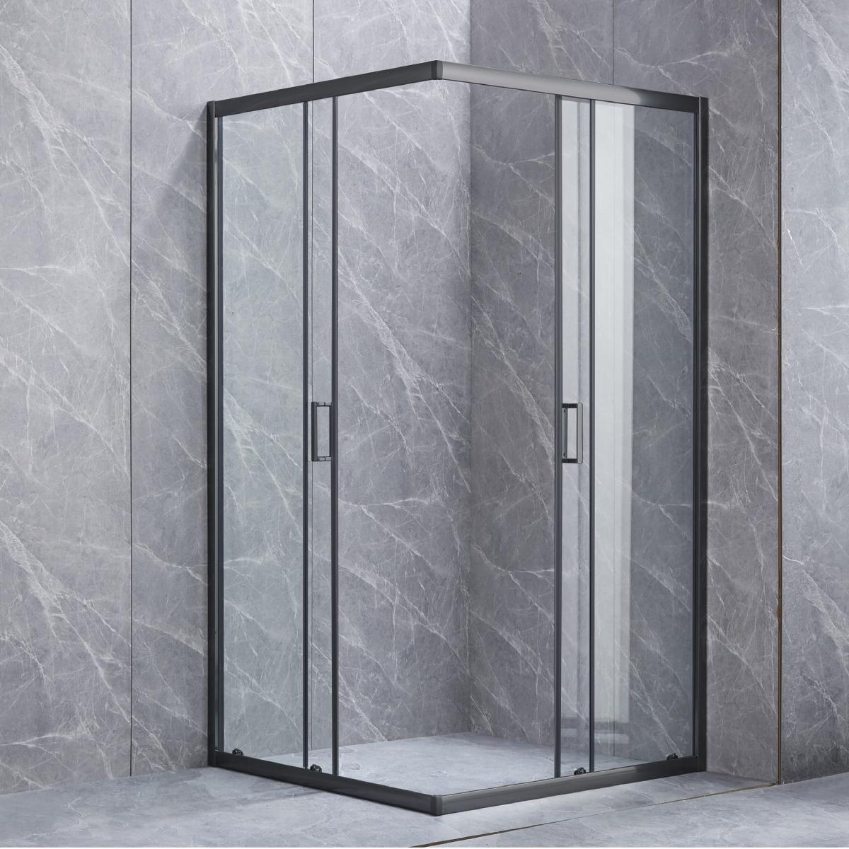 CANCEL PARA BAÑO CUBO 100 X 185CM CRISTAL TEMPLADO CON MARCO NEGRO