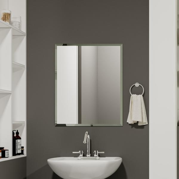 ESPEJO CON BISEL CUADRADO SIN MARCO PLATA 56 X 46 CM