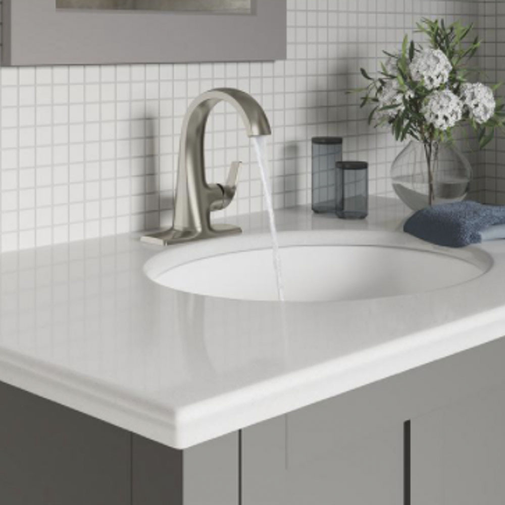 El maneral monomando de cursiva es simple de usar y facilita el ajuste de la temperatura. El cartucho de discos cerámicos permite controlar el volumen y la temperatura del agua en una sola pieza. El cartucho de discos cerámicos de kohler supera los estándares de duración de la industria, asegurando un desempeño de por vida.