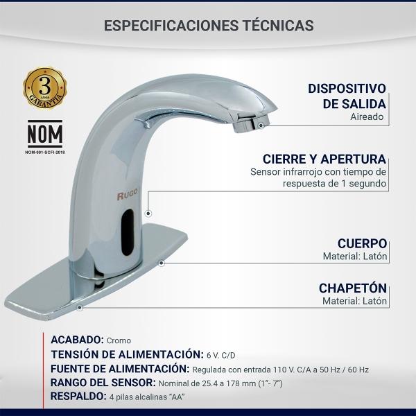 LLAVE DE SENSOR PARA LAVABO RUGO 18 X 16 X 20 CM METAL