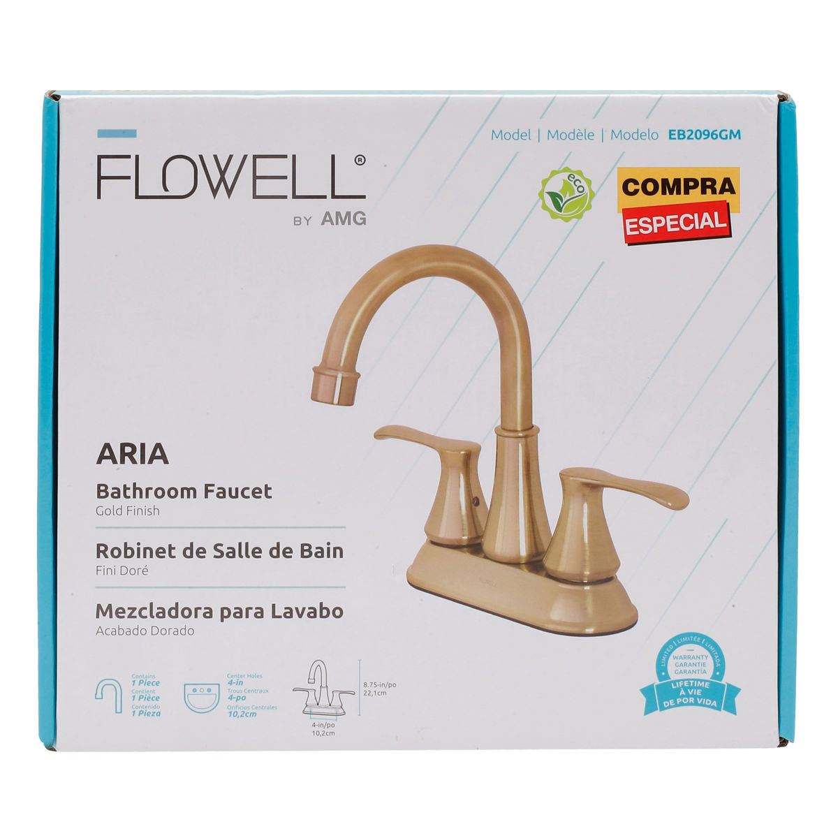 LLAVE MEZCLADORA PARA BAÑO DUOMANDO 4 PULGADAS PLÁSTICO DORADO