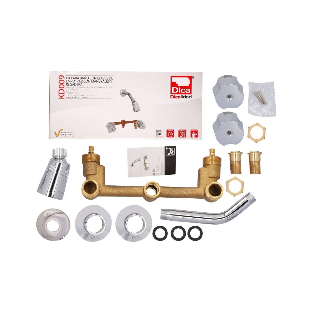 KIT DE LLAVES EMPOTRABLES DE LATÓN CON MANERALES Y REGADERA 5 PIEZAS