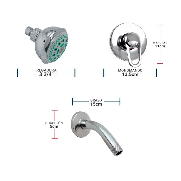 MEZCLADORA MONOMANDO CON REGADERA 14.8 X 9.2 CM PLATA CON HIDROMASAJE RUGO