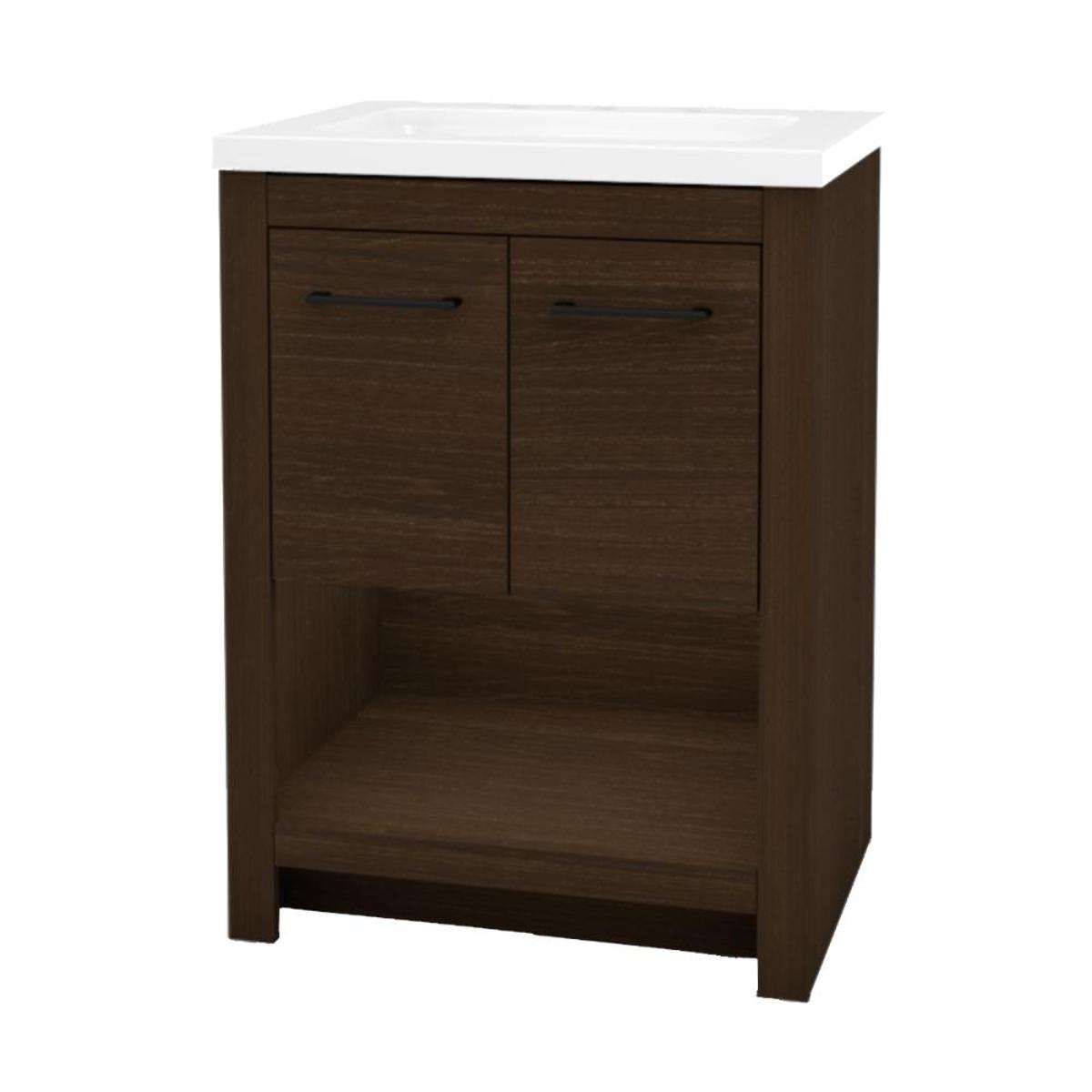 MUEBLE PARA BAÑO DE PISO ARTELLA 24" CAFÉ MDF TERMOFORMADO CON LAVABO