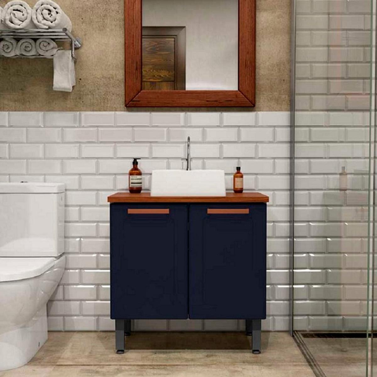 MUEBLE PARA BAÑO DE PISO LONDON 28" AZUL ACERO CON LAVABO
