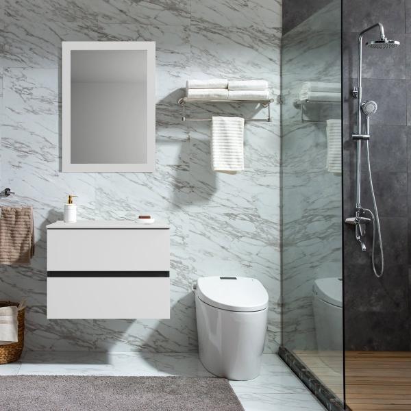 MUEBLE PARA BAÑO FLOTANTE ALICANTE 20" BLANCO PVC CON LAVABO Y ESPEJO