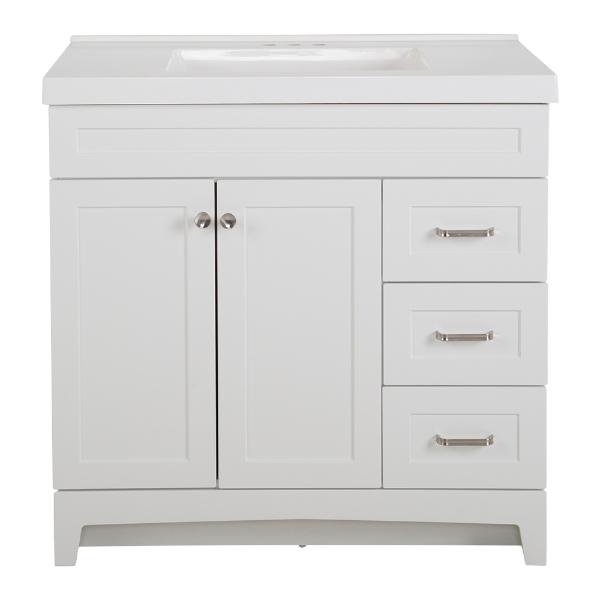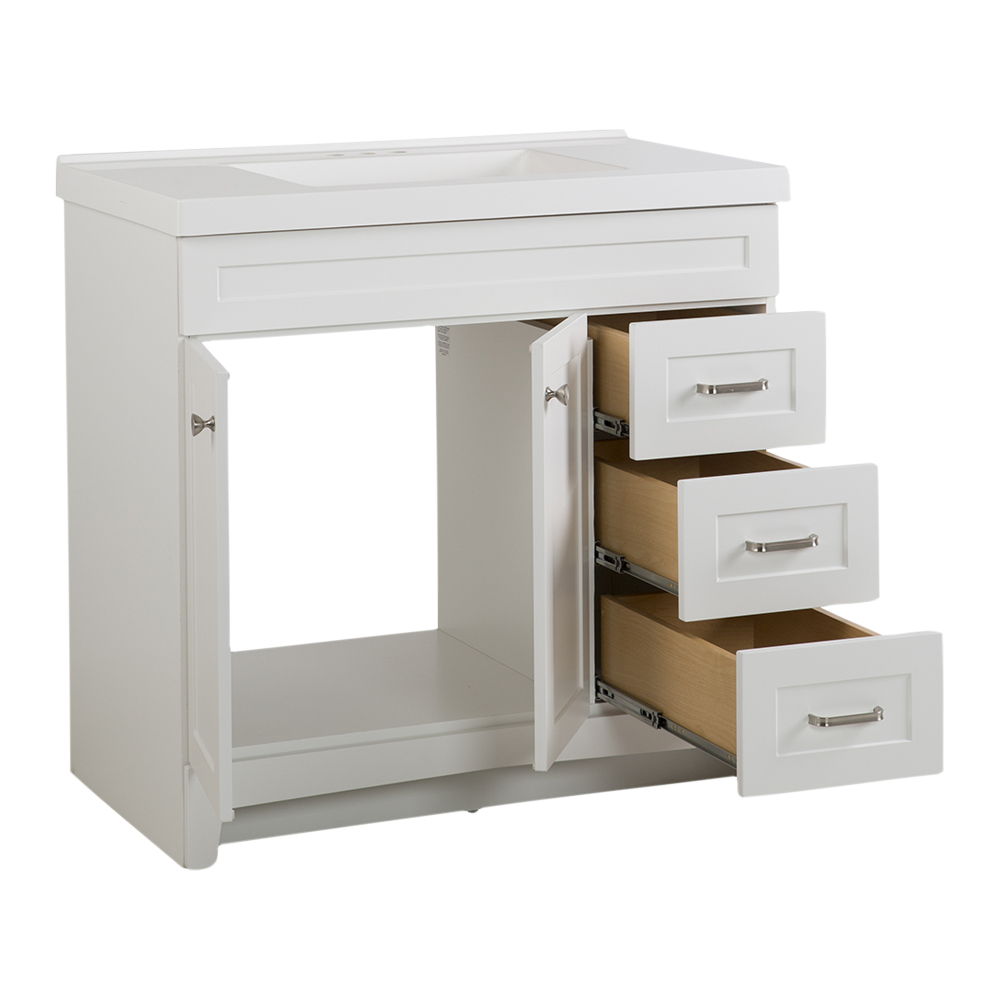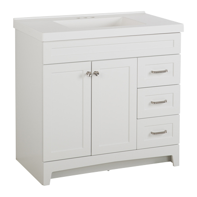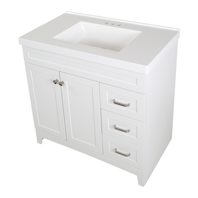 MUEBLE PARA BAÑO DE PISO THORNBRIAR 37" BLANCO MADERA CON LAVABO BLANCO