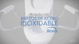 ASIENTO PARA BAÑO PERMAJUSTE ANTIBACTERIAL CON BRAZOS DE ACERO INOXIDABLE ALARGADO BLANCO PLÁSTICO