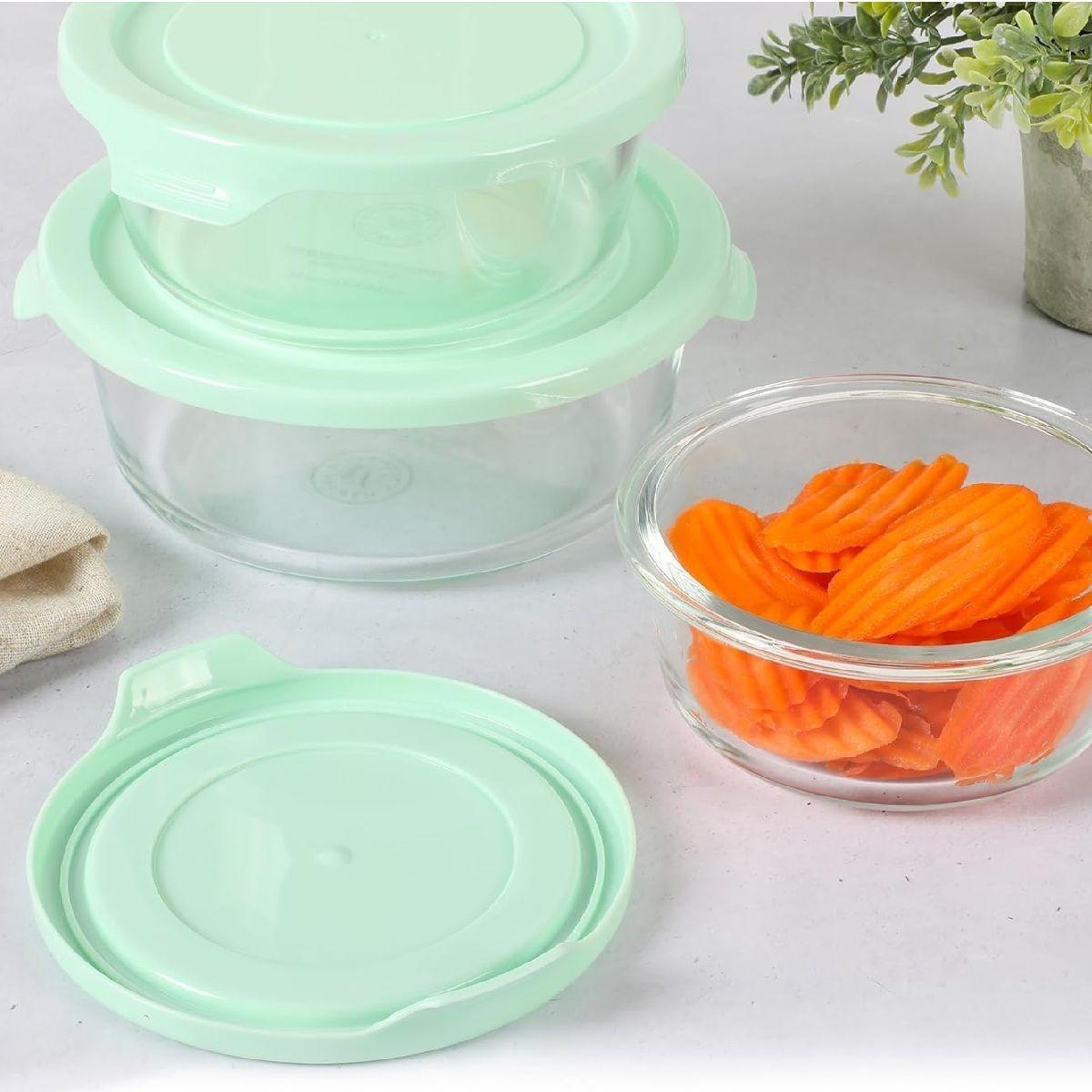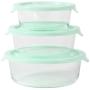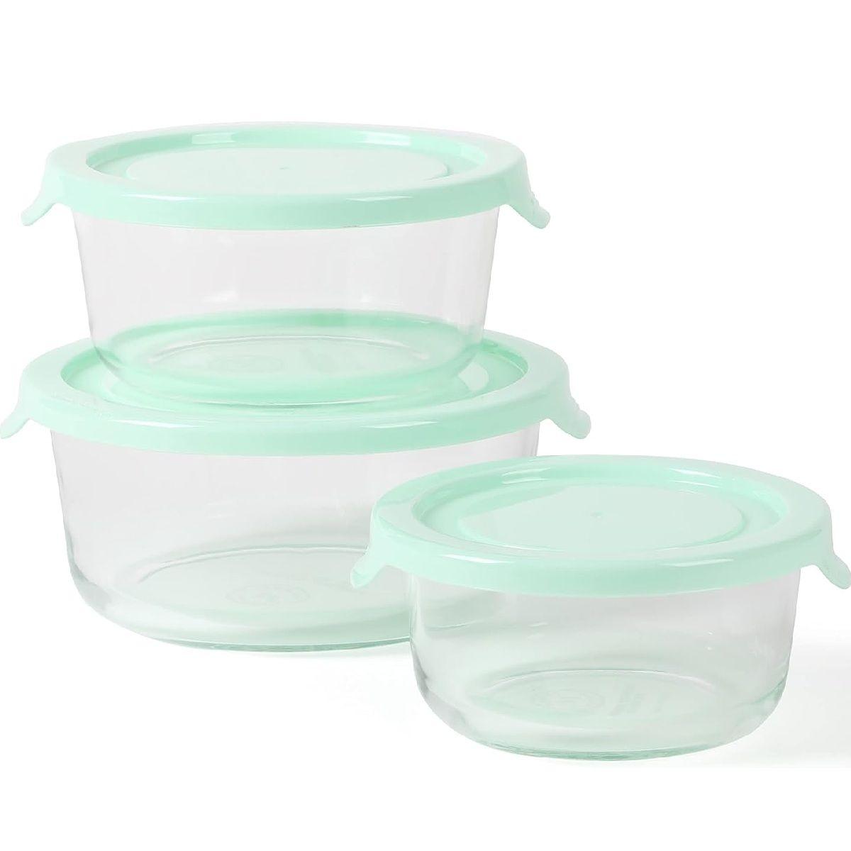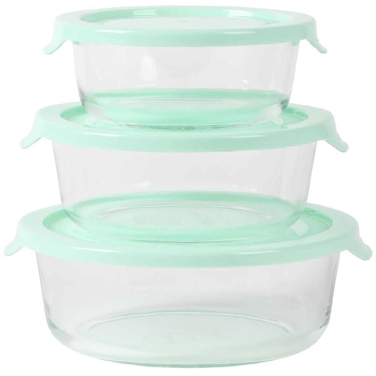 SET DE CONTENEDORES REDONDOS DE VIDRIO-BOROSILICATO MARTHA STEWART 3 PIEZAS CON TAPA, COLOR AZUL TURQUESA, IDEALES PARA ALMACENAMIENTO DE ALIMENTOS