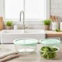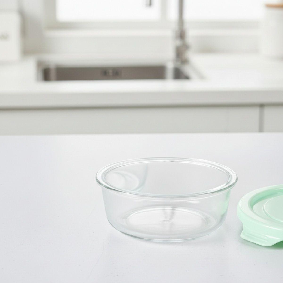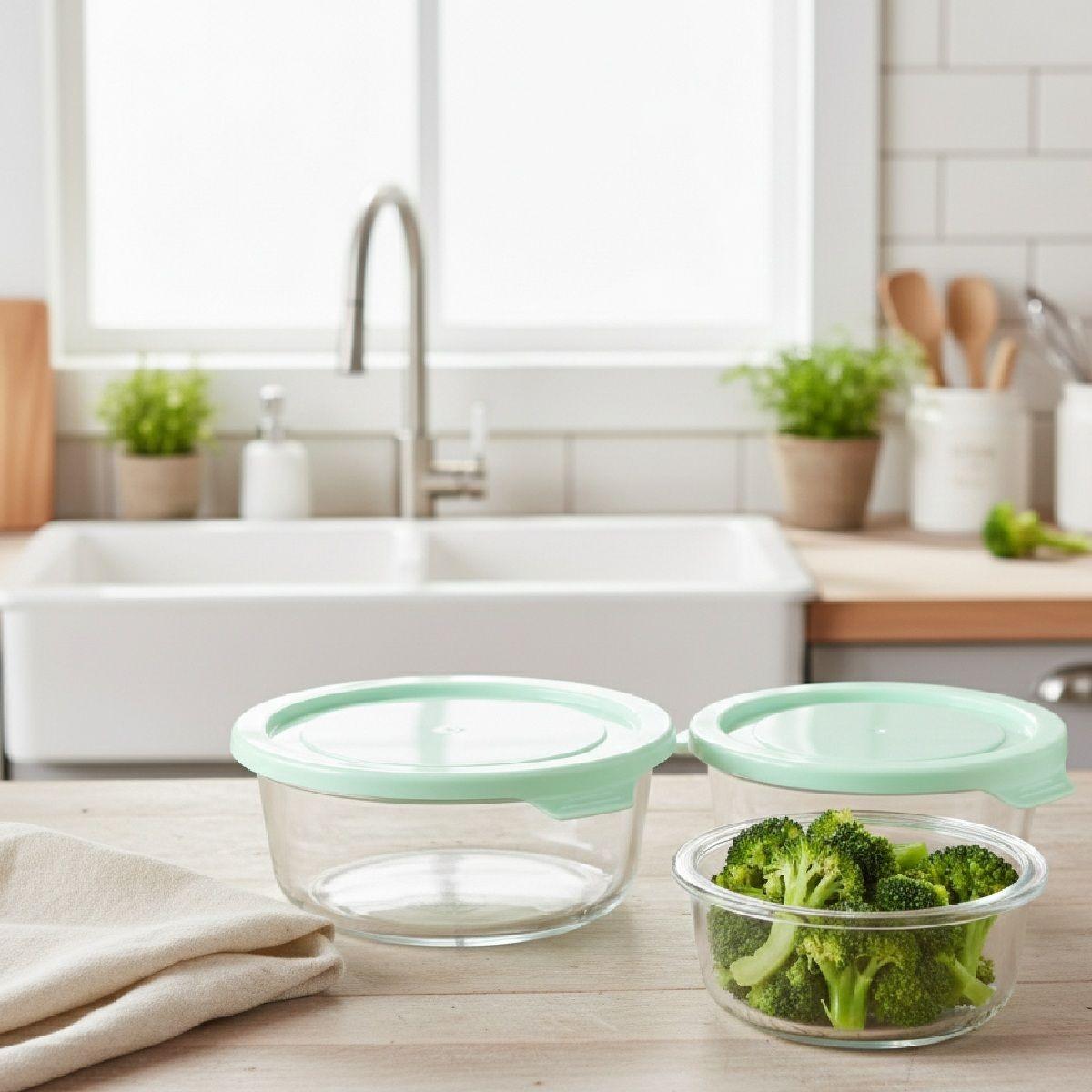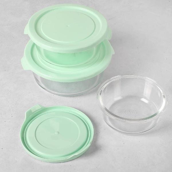 SET DE CONTENEDORES REDONDOS DE VIDRIO-BOROSILICATO MARTHA STEWART 3 PIEZAS CON TAPA, COLOR AZUL TURQUESA, IDEALES PARA ALMACENAMIENTO DE ALIMENTOS