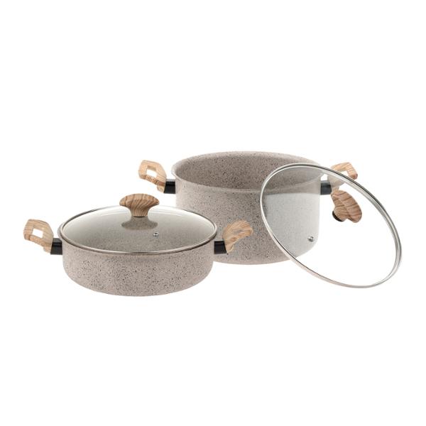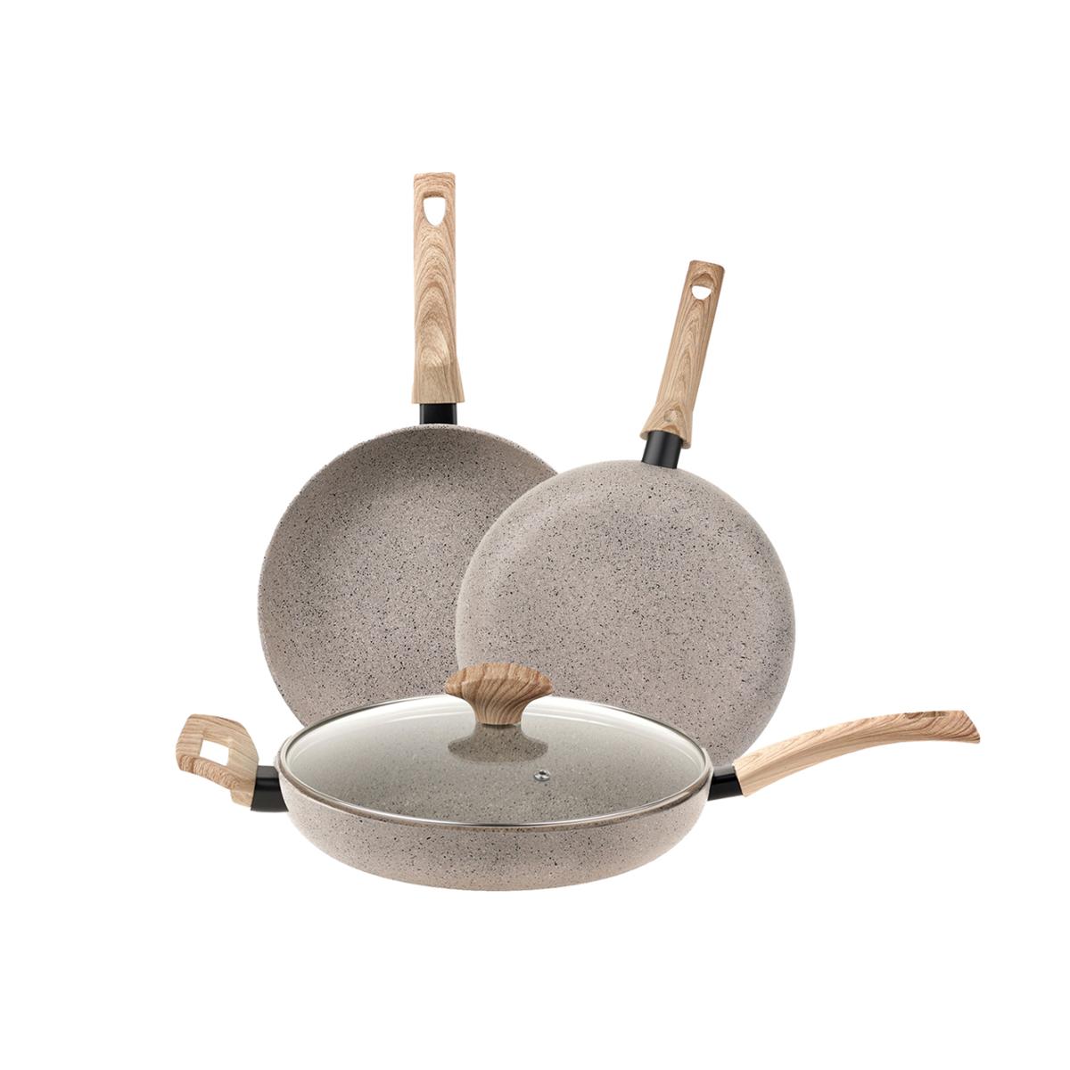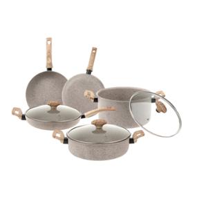 Batería de Cocina 8 Piezas Vasconia Prima hecha de aluminio. Dale estilo y funcionalidad óptima a tu cocina equipándola con nuestra nueva línea de cocina Vasconia Prima Fácil limpieza su diseño con antiadherente exterior e interior de alta gama garantiza que el limpiar tu batería de cocina sea una tarea sin complicaciones ya que los alimentos se deslizan sin necesidad de utilizar aceite o grasas adicionales. Fabricada en aluminio de 3.5 mm que la vuelve mucho más durable y resistente al uso diario, ya sea para preparar tus comidas o cenas familiares, este juego de ollas será tu aliado para preparar tus platillos favoritos. Esta batería antiadherente es compatible con estufas de gas, vitrocerámica y eléctrica. Con una variedad de piezas diseñadas para satisfacer todas tus necesidades, esta batería incluye Olla de cocina de 24 cm con tapa de vidrio Cacerola de 24 cm con tapa de vidrio. Sartén jumbo de 30 cm con tapa de vidrio. Sartén de 24 cm. Sartén de 26 cm