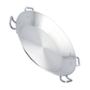 Esta Paellera de 70 cm Vasconia Hecha de Aluminio es la ideal para preparar tus paellas, risottos y de más. Esta paellera es útil para aquellas cocinas profesionales, ya que cuenta con certificación NSF que garantiza la calidad con la que fue producido el producto, así como la resistencia y durabilidad ante el uso profesional. Fabricada con aluminio de 4.0 mm que proporciona la conducción de calor de manera uniforme y más rápido. Cuenta con 4 asas remachadas para mayor seguridad al momento del agarre. La paellera cuenta con un diámetro de 70 cm y una profundidad aproximada de 10.5 cm, dimensiones que le permiten ofrecer una capacidad total de 38 litros, ideal para preparaciones de gran volumen en cocinas profesionales y de alta frecuencia.