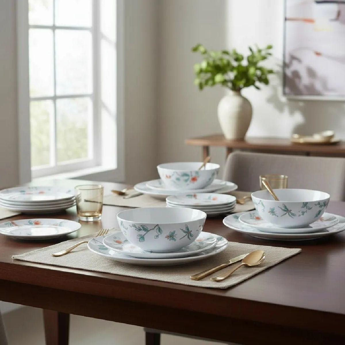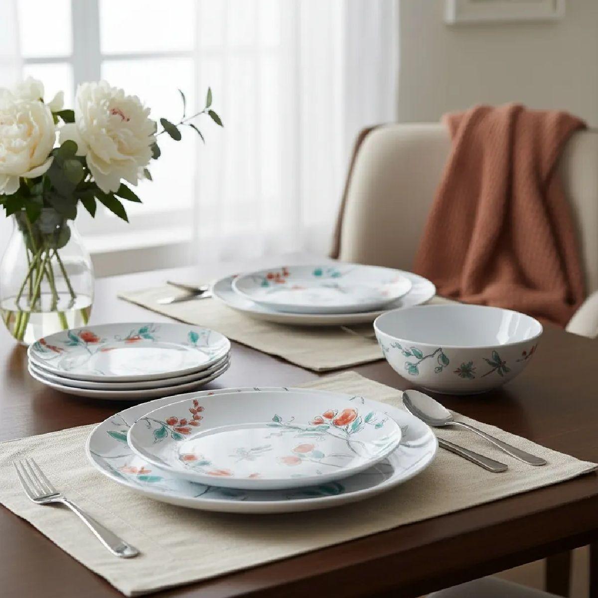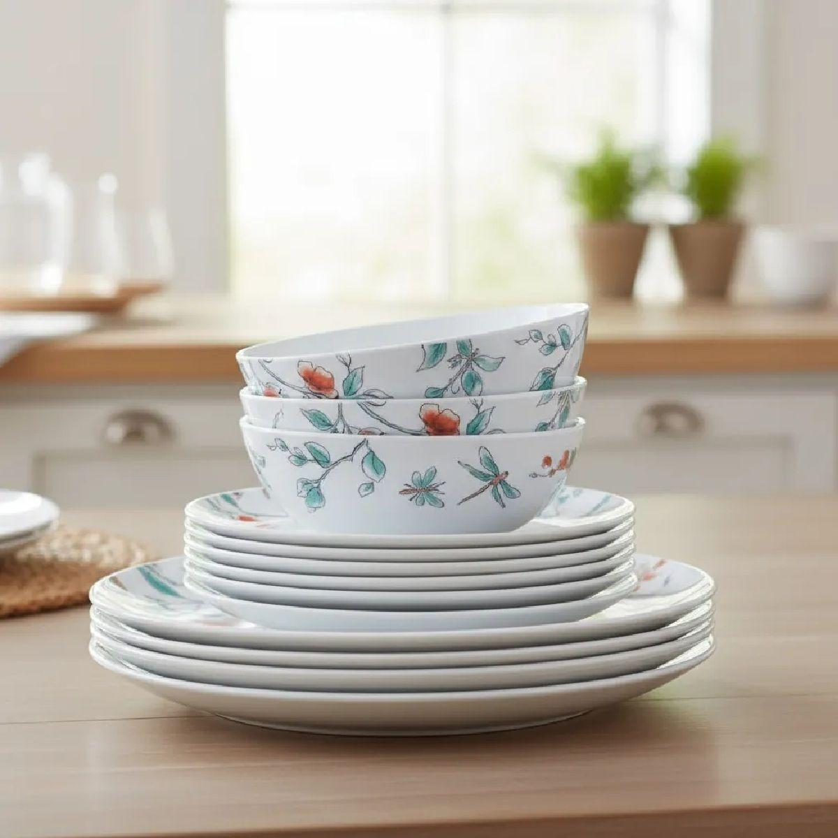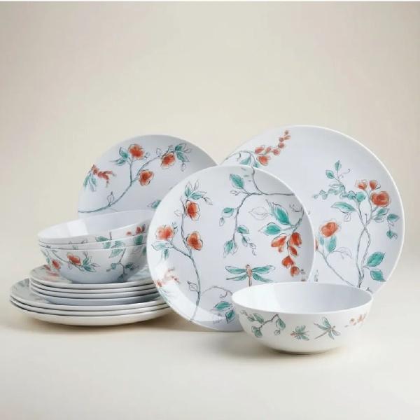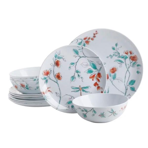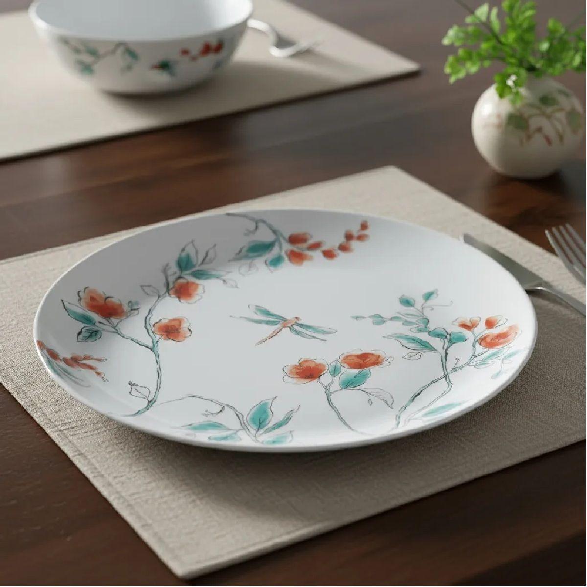 Realce cada comida con el Juego de Vajilla Martha Stewart una impresionante colección de 12 piezas en elegantes tonos multicolor que aporta sofisticación y versatilidad a su mesa.Perfectamente diseñada para realzar cualquier ocasión, cada pieza combina estilo y funcionalidad, garantizando que cada desayuno, almuerzo o cena sea especial. Contenido: 4 platos extendidos4 platos de ensalada postre 4 bowls hondos Características principales Material: Melamina Diseño: Estampado floral con insectos (libélulas y mariposas) estilo acuarela. Acabado: Brillante, fácil de limpiar. Uso: Apto para microondas y lavavajillas (revisar etiqueta según lote). Estilo Martha Stewart: combina la practicidad moderna con detalles artísticos atemporales.
