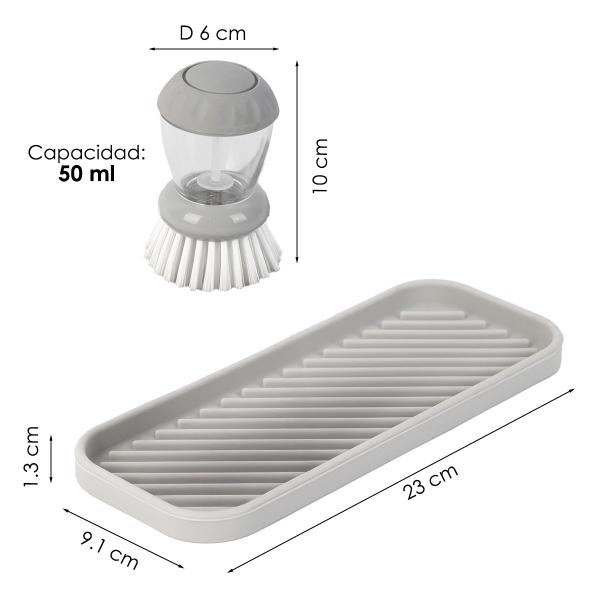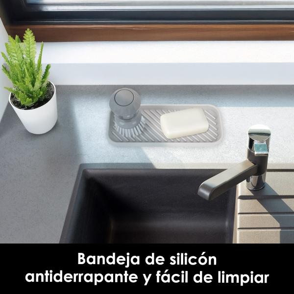 | Acabado | Mate | Contenido del empaque | Una bandeja de silicón y un cepillo dispensador de jabón. |