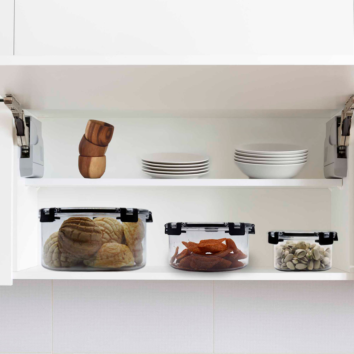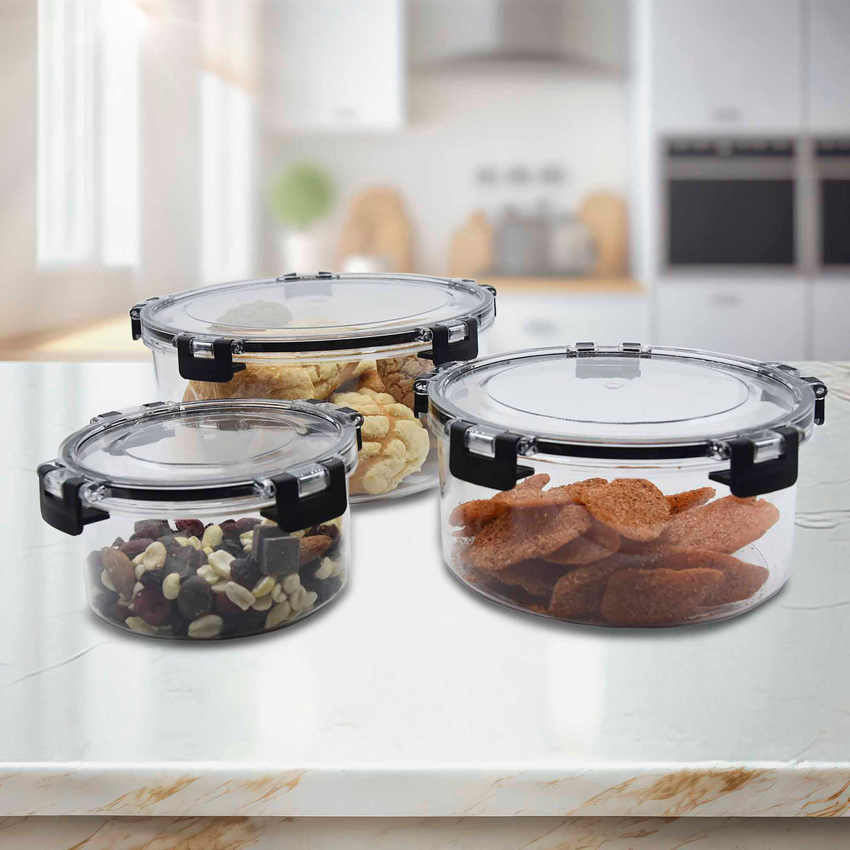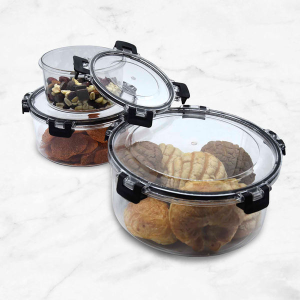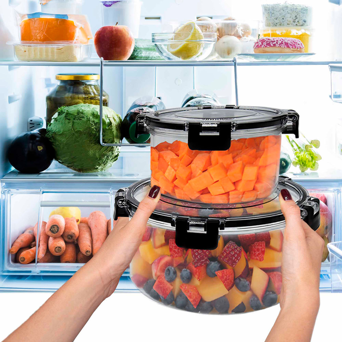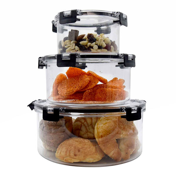 El set de 3 contenedores herméticos de Trendy Loft es la solución perfecta para conservar la frescura de tus alimentos mientras optimizas el espacio en tu cocina. Fabricados con materiales de alta calidad libres de BPA, incluyen un anillo de sellado que garantiza un cierre hermético y seguro, ideal para evitar derrames y prolongar la vida útil de tus alimentos. El set incluye tres tamaños funcionales uno de 2.5 L (diámetro de 22 cm y alto de 10 cm), perfecto para grandes cantidades; otro de 1.2 L (diámetro de 18.5 cm y alto de 8.5 cm), ideal para porciones medianas; y uno de 600 ml (diámetro de 15 cm y alto de 7.5 cm), adecuado para pequeñas porciones o snacks. Además, su diseño apilable permite maximizar el espacio en los gabinetes, y su resistencia a temperaturas de -20°C a 70°C los hace versátiles para almacenamiento en refrigeradores o uso en alimentos tibios. Combina practicidad, diseño y durabilidad con este set imprescindible para tu cocina.