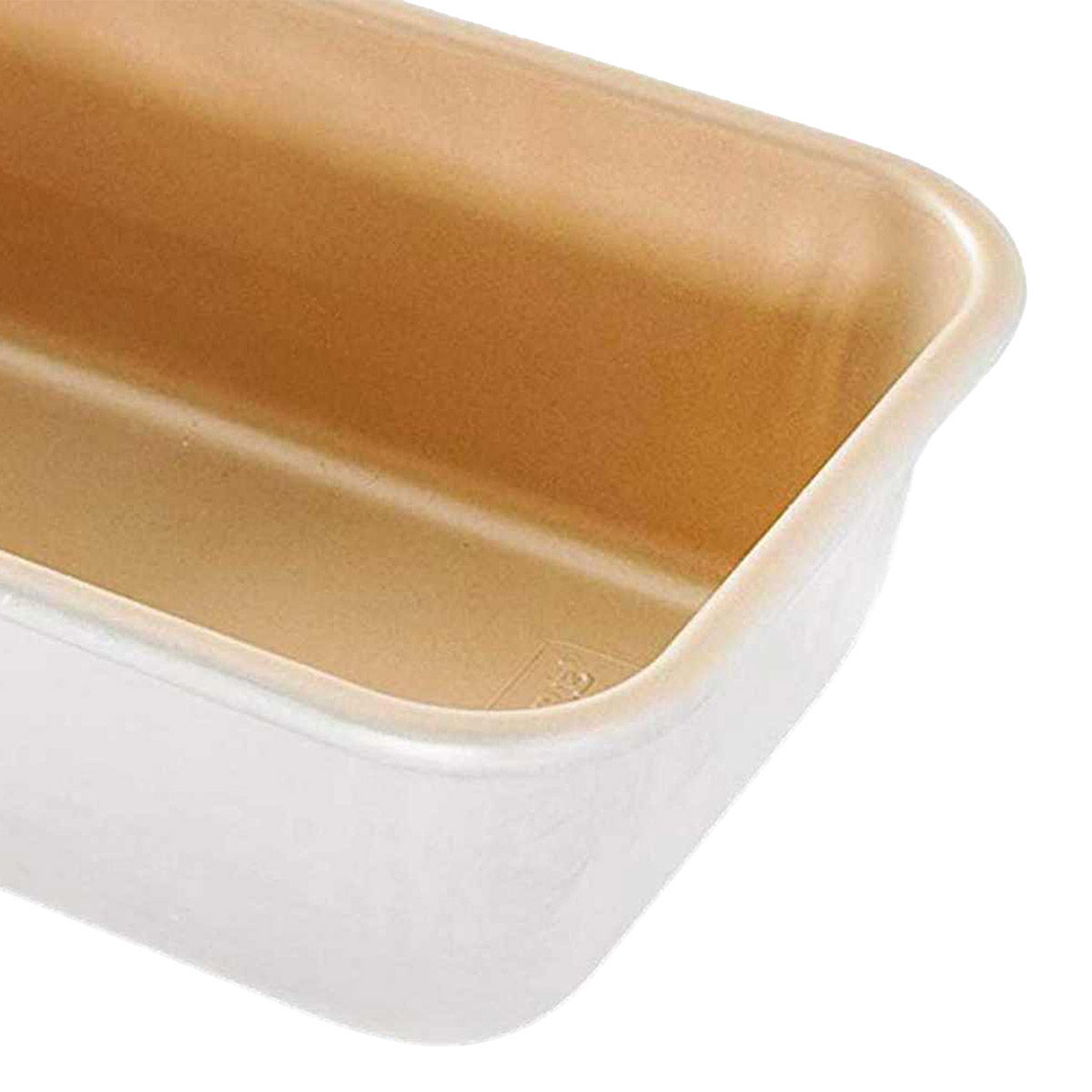Molde para panque Nordicware, ayuda a crear deliciosos pasteles y panes que se pueden compartir con la familia o los amigos. Está fabricado en aluminio de color blanco al exterior y al interior una superficie de color cobre antiadherente que brinda un horneado uniforme para una mejor preparación y presentación, mientras evita que los ingredientes y las mezclas se peguen, también facilita su limpieza. Tiene el tamaño de 15 x 24 x 7 cm, adecuado para todo tipo de pan como panqué de plátano, pan de carne y pasteles.