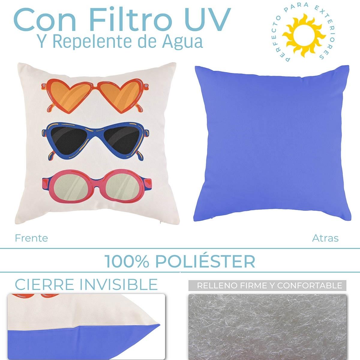 Dale un toque vibrante y moderno a tu espacio con nuestro cojín de 40x40 cm, confeccionado en poliéster sublimado multicolor. Este cojín presenta un atractivo diseño de lentes de sol que no solo añade estilo, sino que también es perfecto para cualquier ambiente, ya sea en tu sala de estar, dormitorio o patio. Su material de alta calidad garantiza durabilidad y comodidad, convirtiéndolo en un accesorio ideal para relajarte y disfrutar de momentos agradables. ¡Transforma tu hogar con este cojín único y colorido!