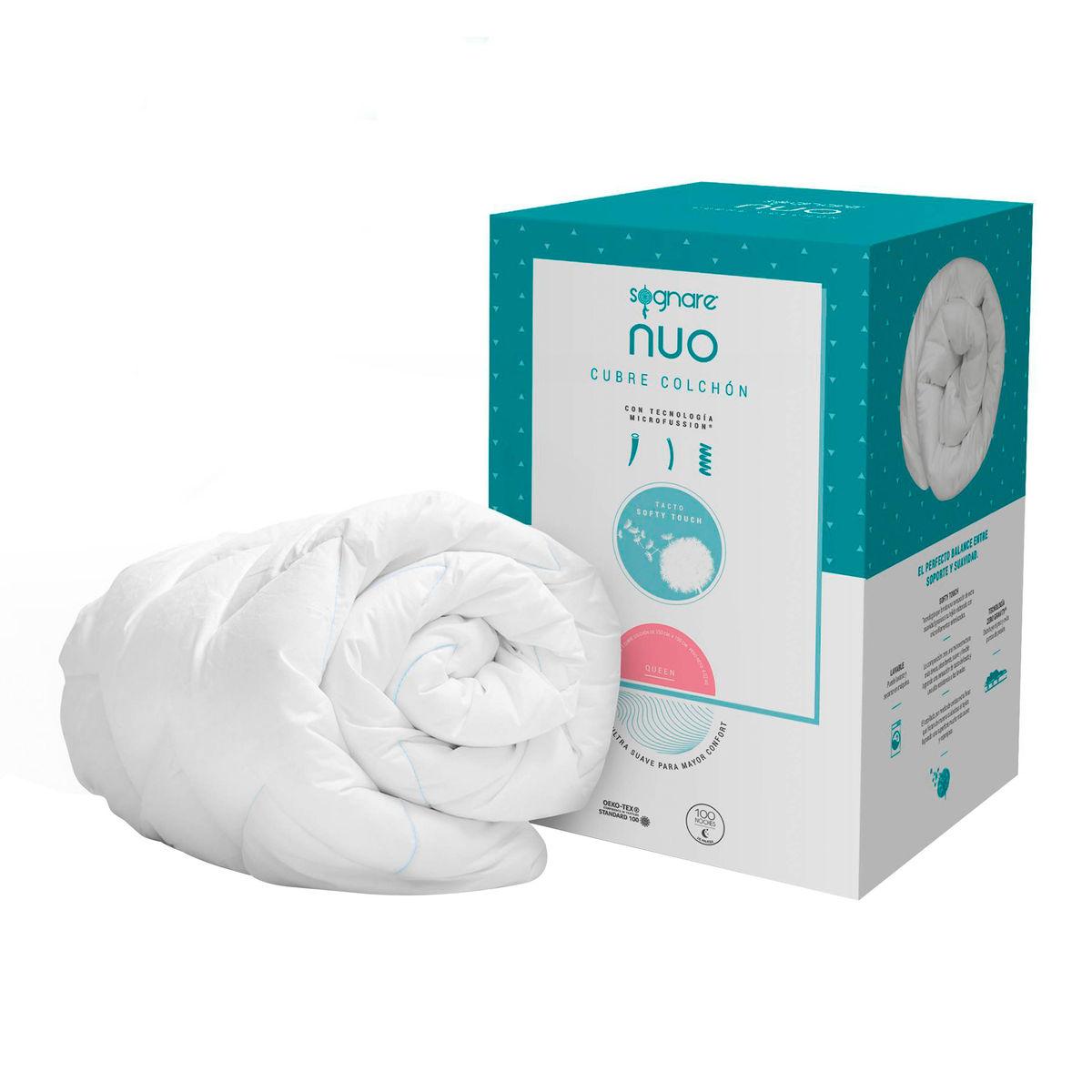 Cubre colchón Nuo Sognare es hipoalergénico, por lo que es adecuado para colocarlo sobre las camas queen size del hogar y con él, 2 personas podrán tener un reconfortante descanso. Ofrece confort al estar hecho con las tecnologías Zero Gravity que distribuye el peso de los usuarios en toda su superficie, evitando los puntos de presión y así, adaptarse al cuerpo de las personas; Softy Touch que es extra suave al tacto, se encuentra formado con una microestructura densa, absorbente y flexible de un tejido de microfilamentos entrelazados; y Microfussion que combina 3 microfibras de gel, 10 veces más delgadas que un cabello, que actúan como válvulas de aire, para soportar correctamente a las personas. Además, está fabricado con materiales resistentes y duraderos. Sus dimensiones son 1.50 x 1.90 m. Para su limpieza, puede lavarse y secarse en máquinas.