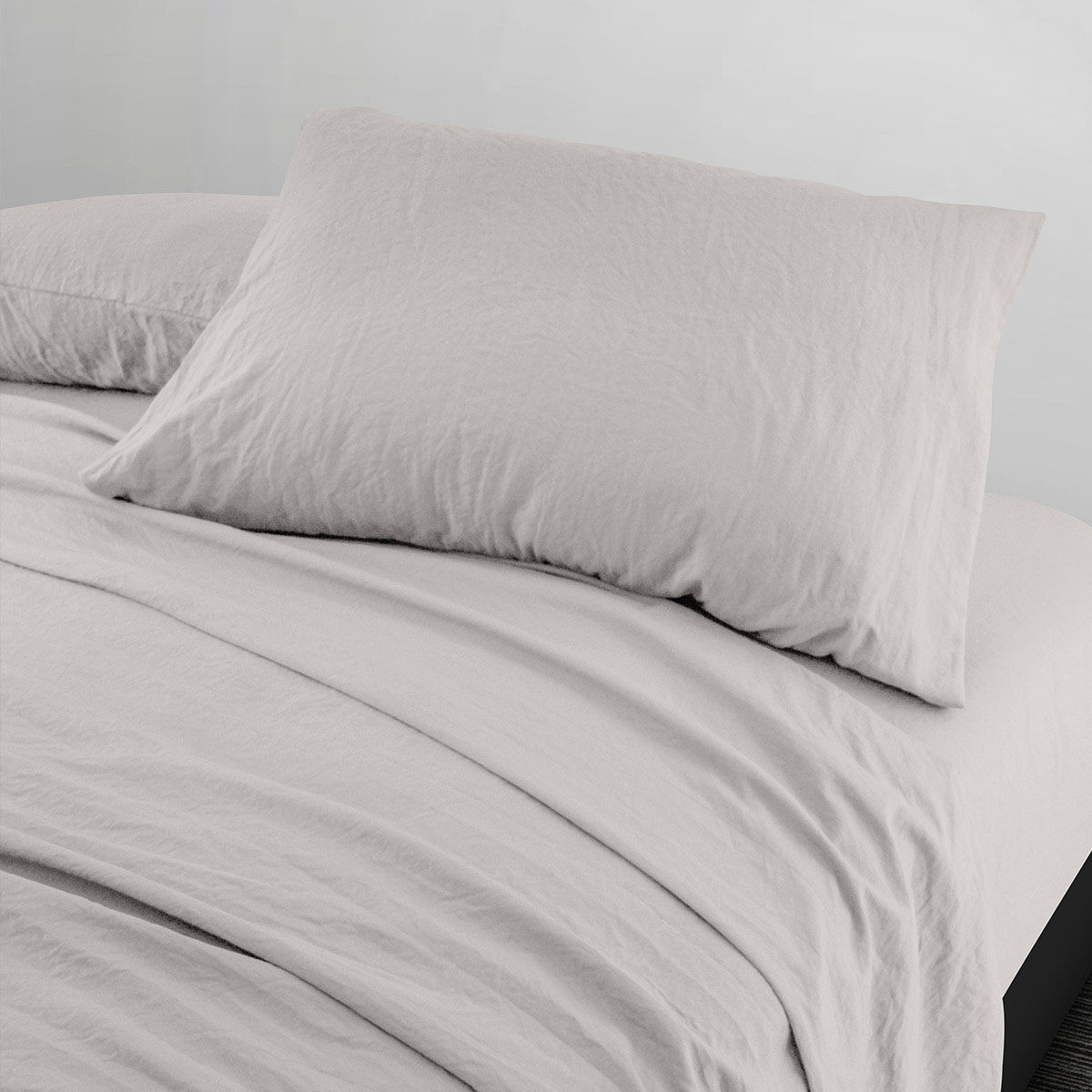 Juego de sábanas queen size Hazel Dalfiori, confeccionado en tela de microfibra lavada en piedra, 100% poliéster, con una apariencia única. Incluye 1 sábana plana, 1 sábana de cajón ajustable y 2 fundas de almohada tamaño estándar.