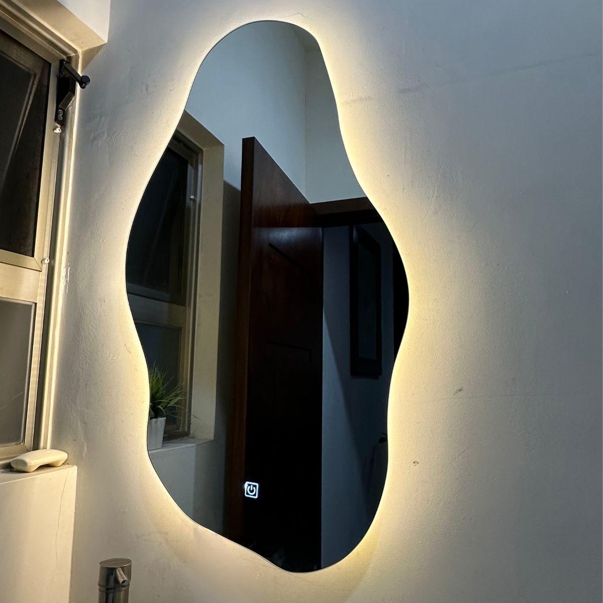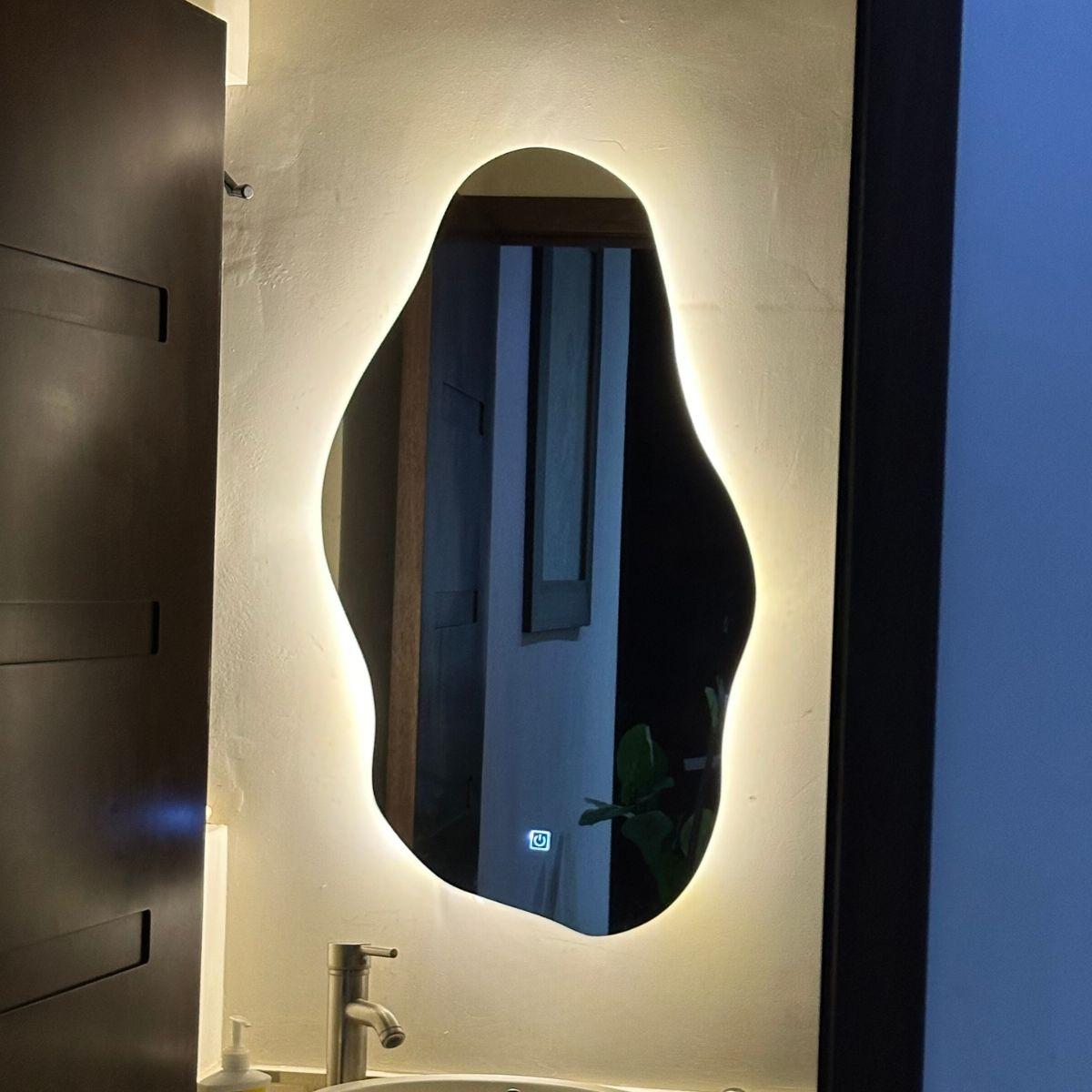 ESPEJO ASIMETRICO CANTO PULIDO LUZ LED CALIDA