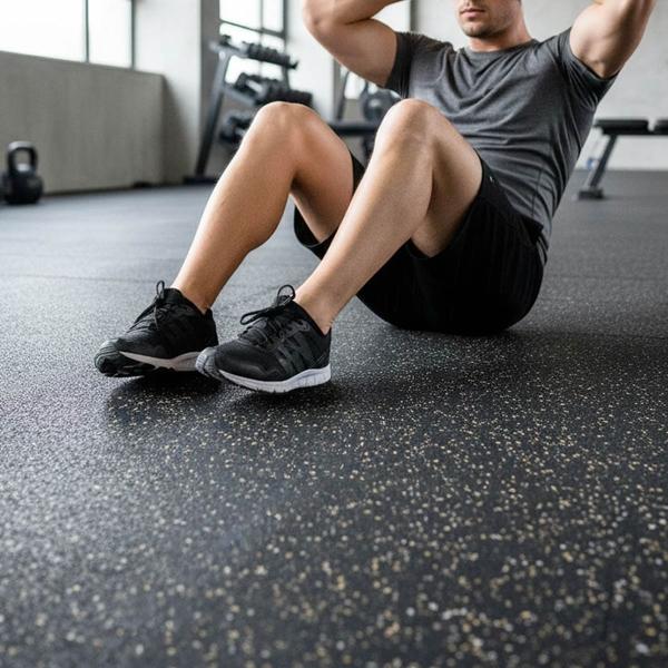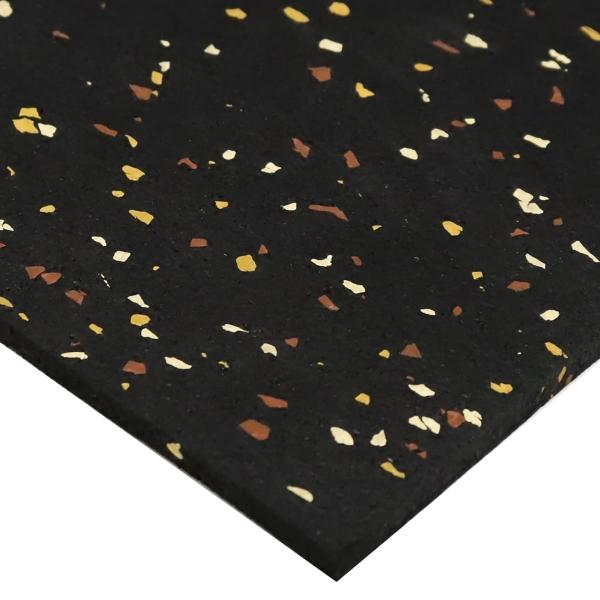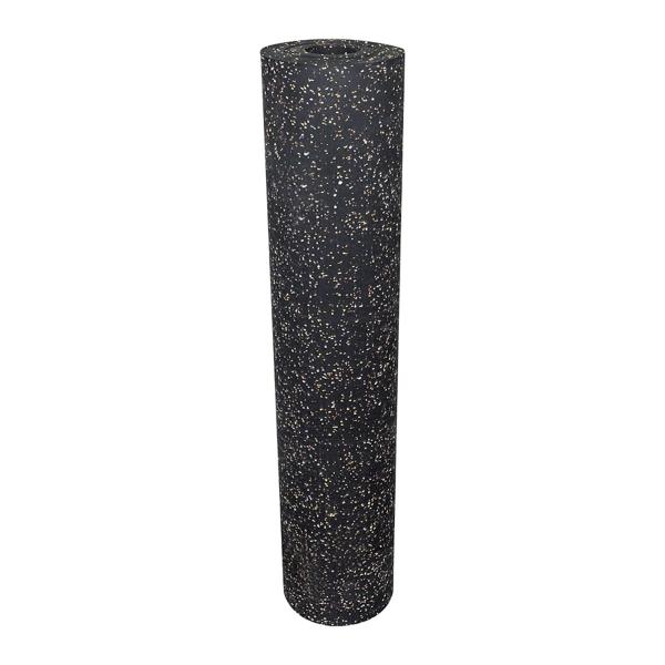 Piso en rollo profesional para gimnasios de uso rudo y entrenamiento de alto impacto. Fabricado con hule 100% reciclado, garantiza durabilidad extrema y resistencia. Su diseño negro con chispas en tonos beige y café ofrece una estética natural y moderna. El material de 6 mm absorbe impactos, reduce el ruido y protege el subsuelo. Se suministra en rollo de 1.22 m de ancho x 7.60 m de largo.