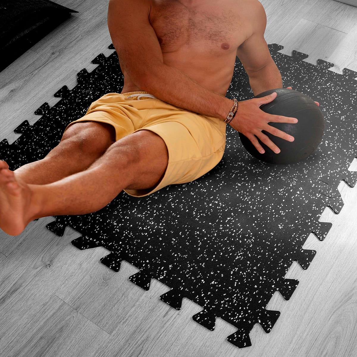 PISO GIMNASIO MODULAR ROMPECABEZAS HULE RECICLADO NEGRO/GRIS 50X50 CM 6MM