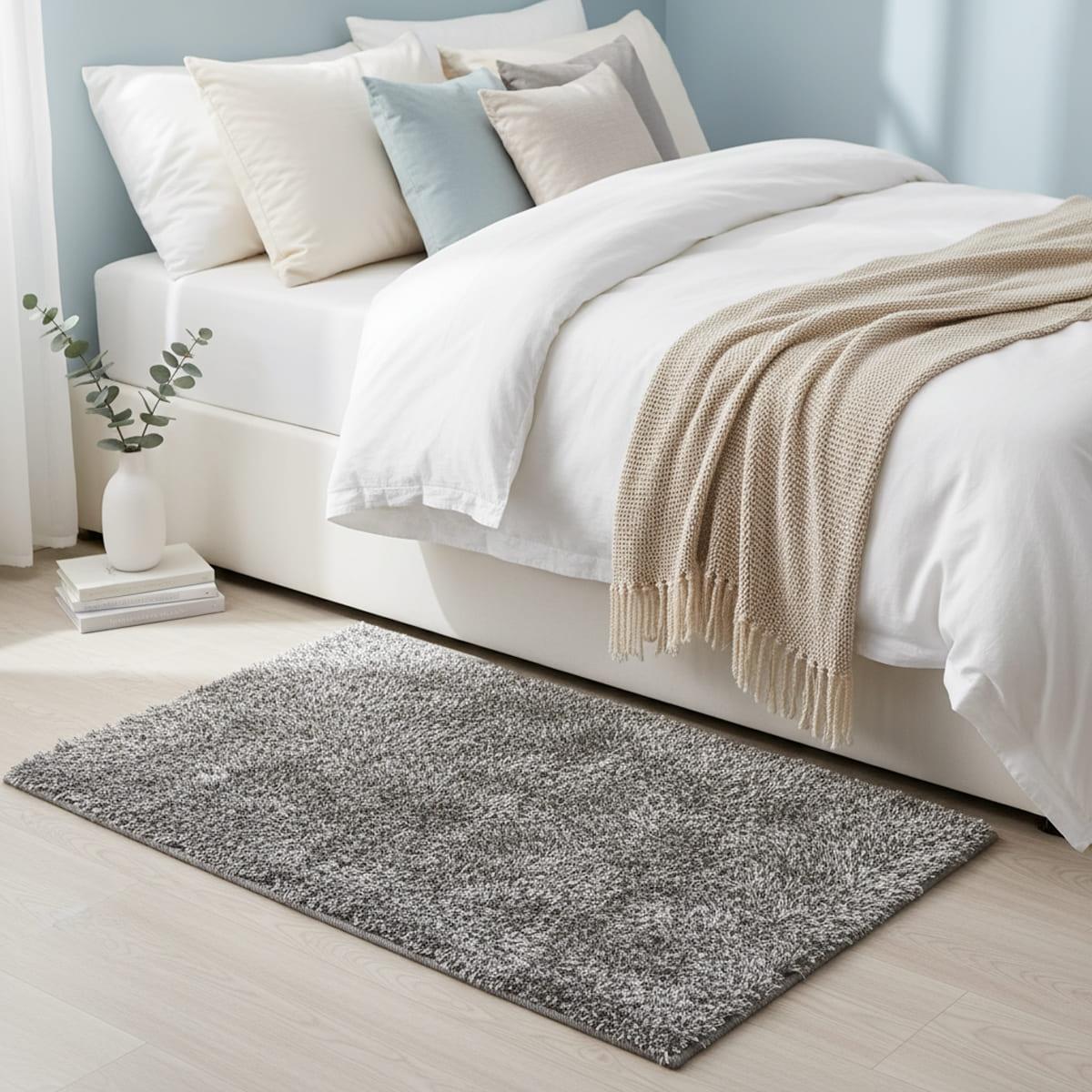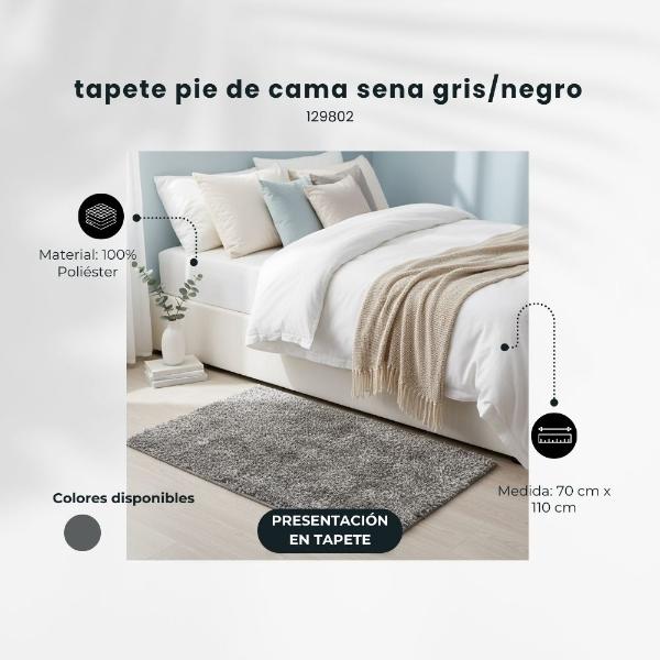 TAPETE PIE DE CAMA SENA GRIS/NEGRO 70 X 110 CM