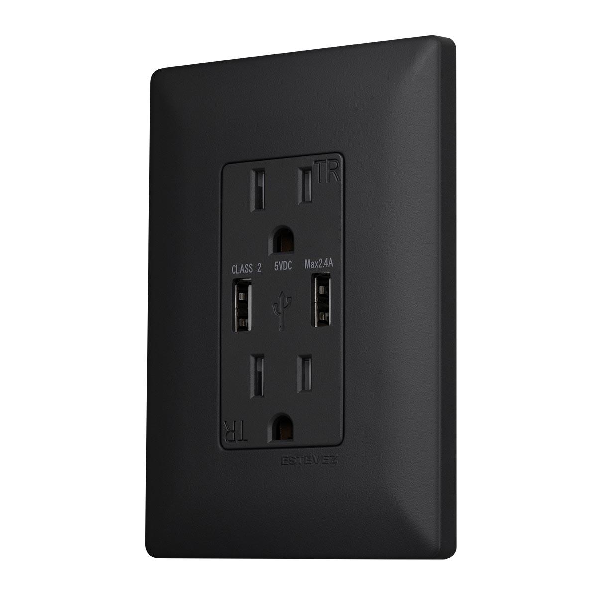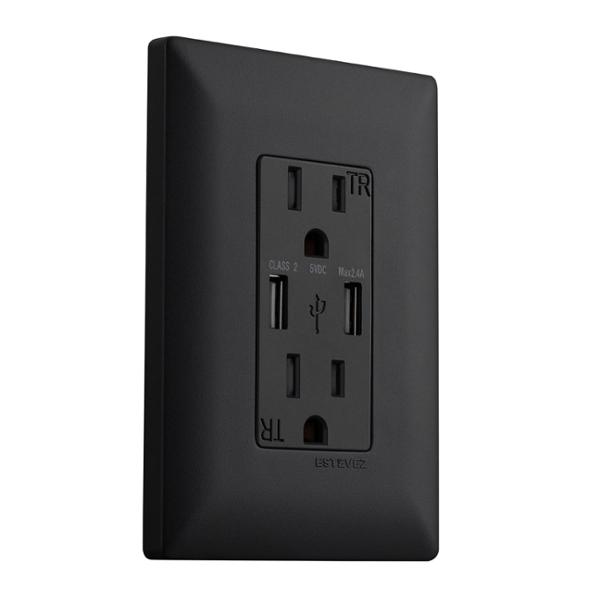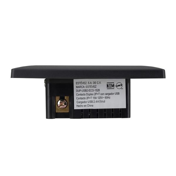 CONTACTO DÚPLEX CON 2 TOMAS DE CARGA USB TIPO A Y PLACA DE PARED NEGRO