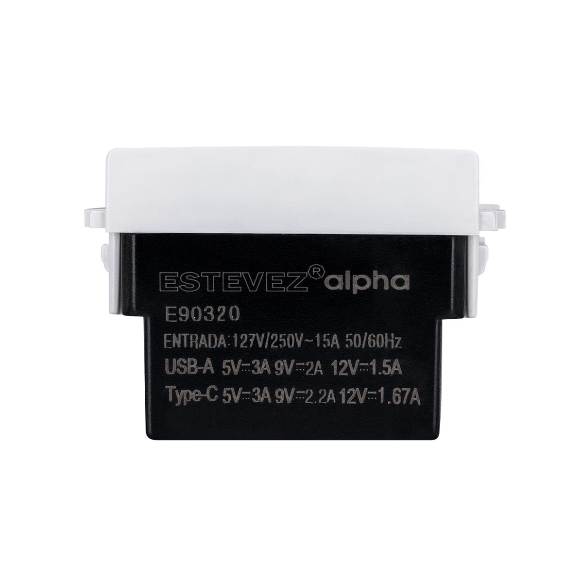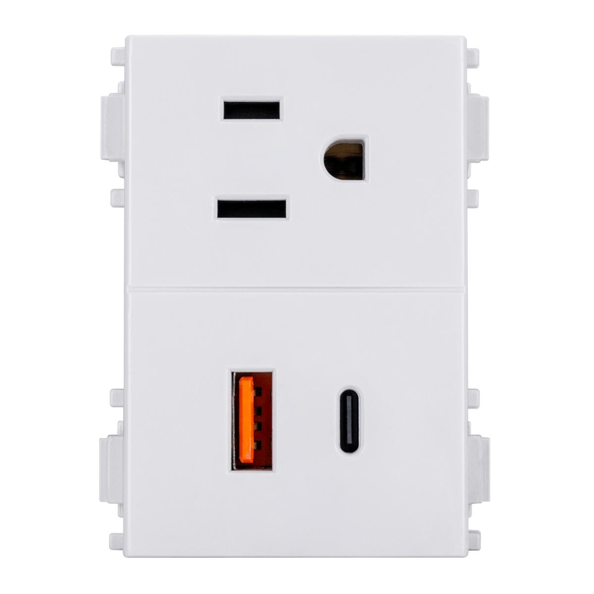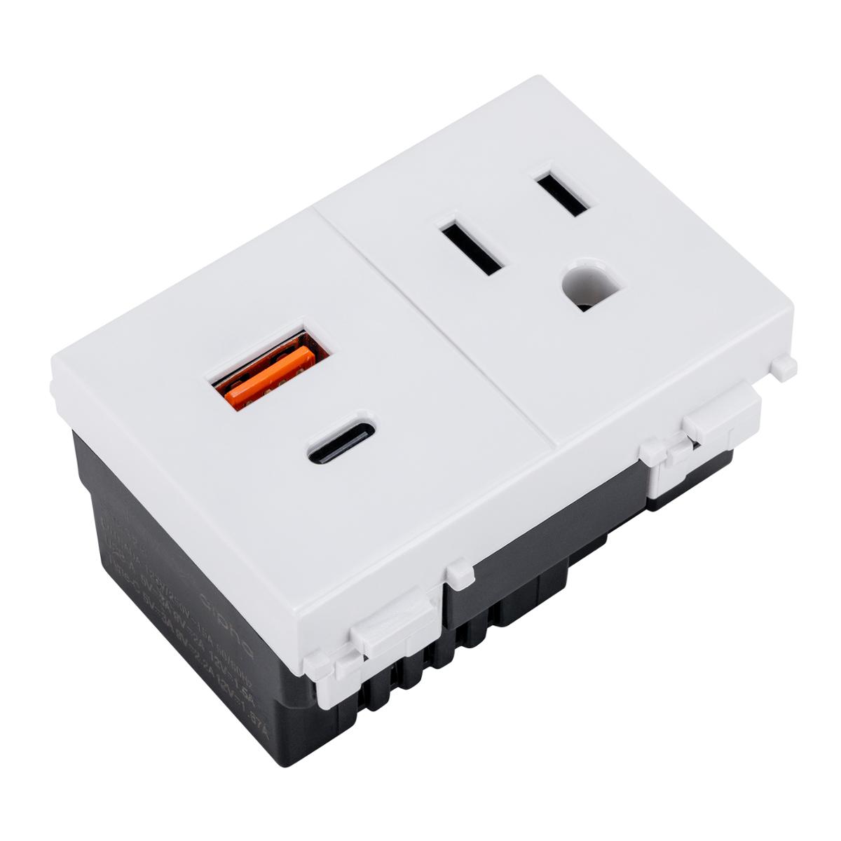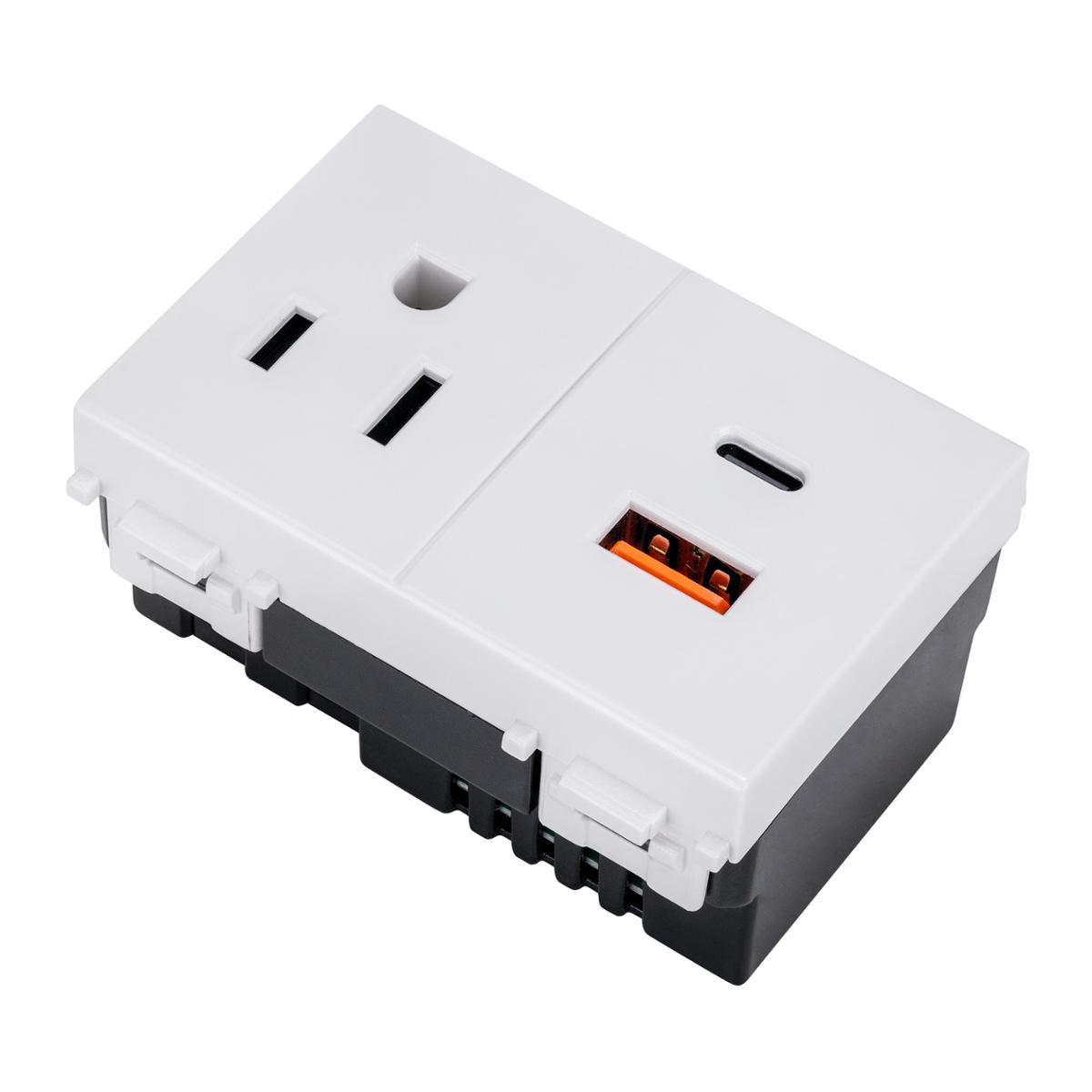 CONTACTO CON CARGADOR USB TIPO A Y TIPO C DE 3 MÓDULOS BLANCO