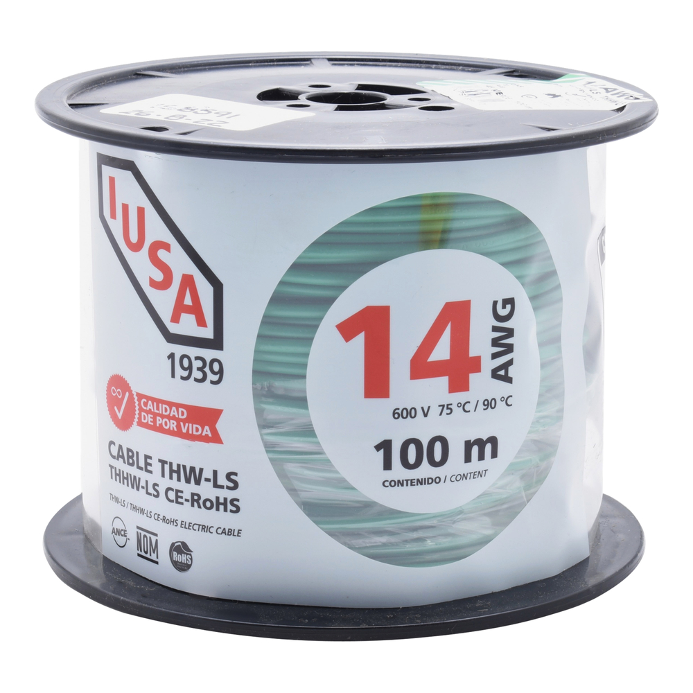 CABLE IUSA THWLS/THHWLS 14 AWG COLOR VERDE EN CARRETE DE 100 M