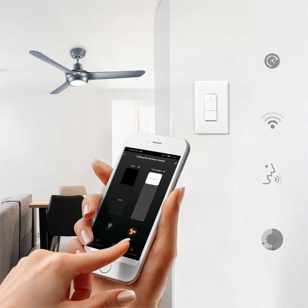 CONTROL DE VENTILADOR INTELIGENTE WIFI CON PLACA DE PARED BLANCO