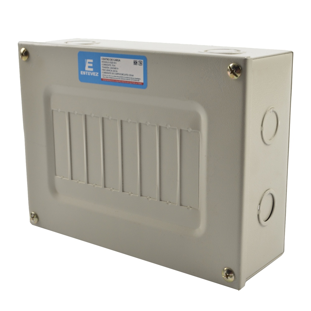 Centro de carga Estévez, ayuda a distribuir de manera eficaz la energía dentro de residencias o comercios, además protege contra sobrecargas y cortos circuitos que pueden dañar la instalación eléctrica. Fabricado en metal beige resistente y duradero con cubierta removible para facilitar su acceso a las conexiones. Tiene la capacidad para 8 módulos, 1 fase, trabaja con una tensión de 120 a 240 volts y corriente de 100 amperes. Sus dimensiones son 17 x 22.9 x 7.6 cm, su diseño de sobreponer permite una instalación sencilla y rápida.