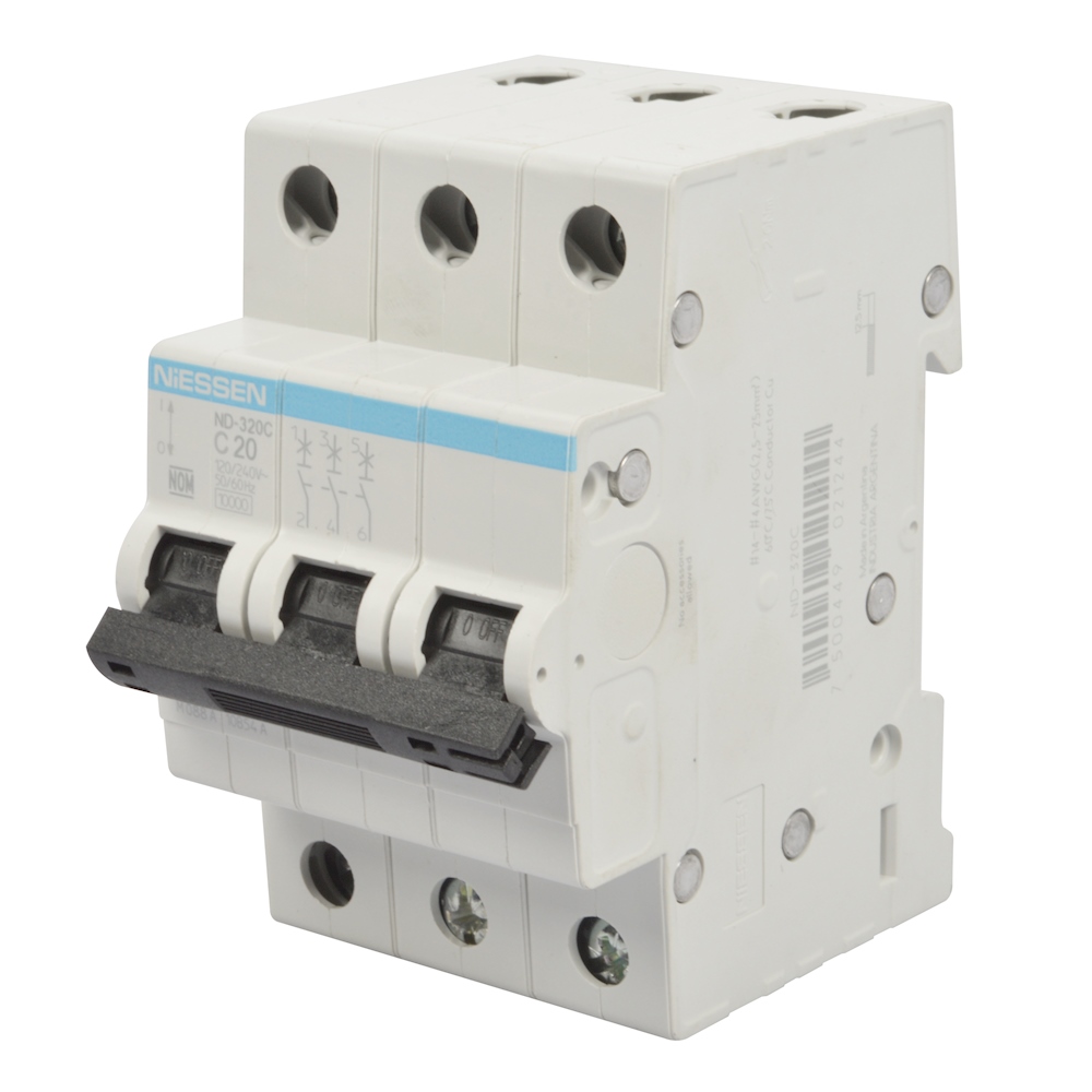 INTERRUPTOR TERMOMAGNÉTICO DE 3 POLOS DIN 20 AMPERES NIESSEN