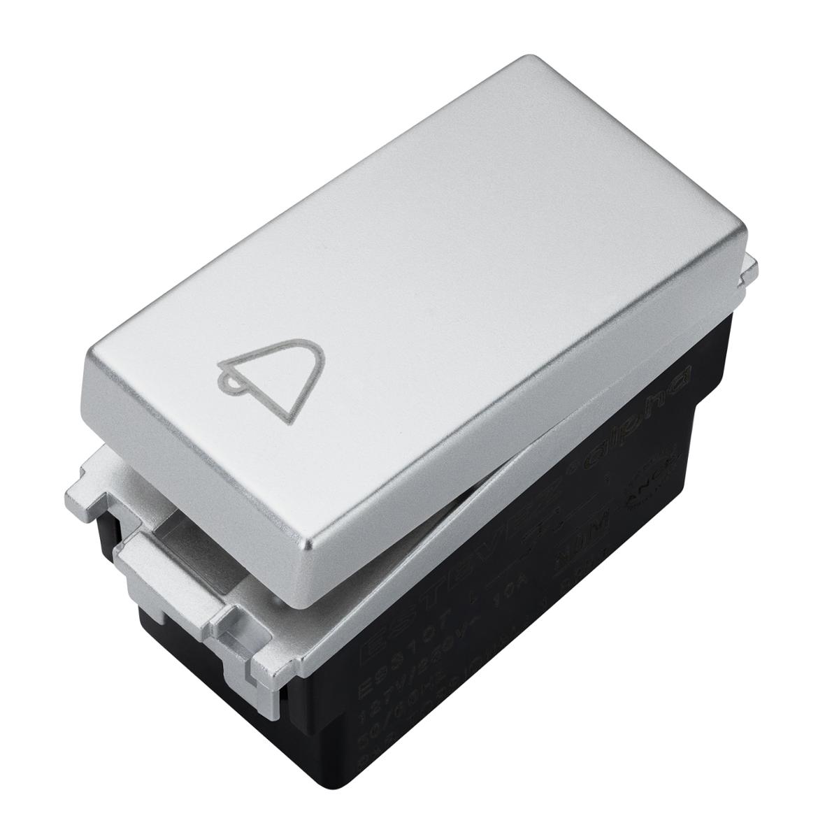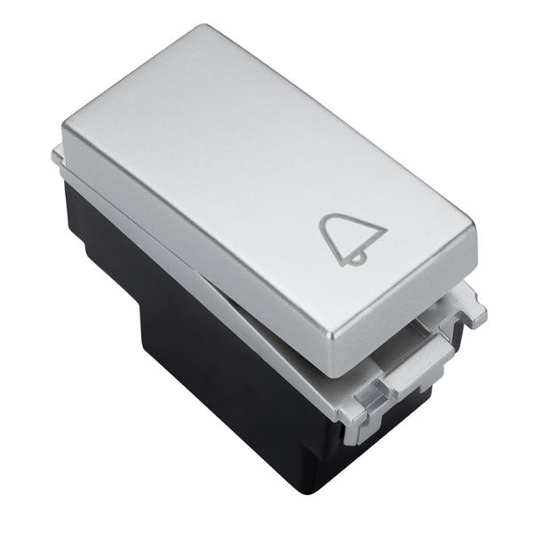 BOTÓN PARA TIMBRE CON GRABADO DE CAMPANA DE 1 MÓDULO PLATA