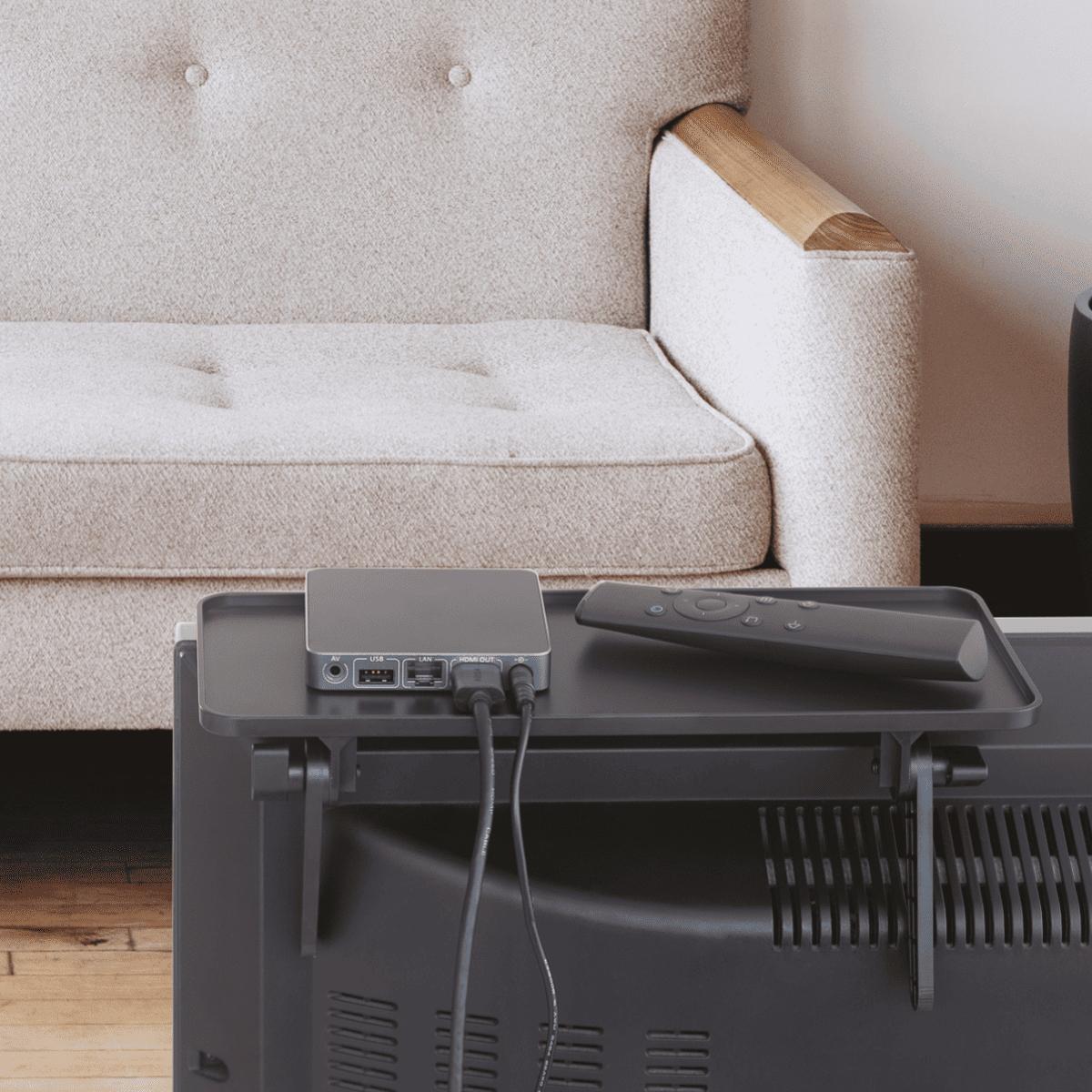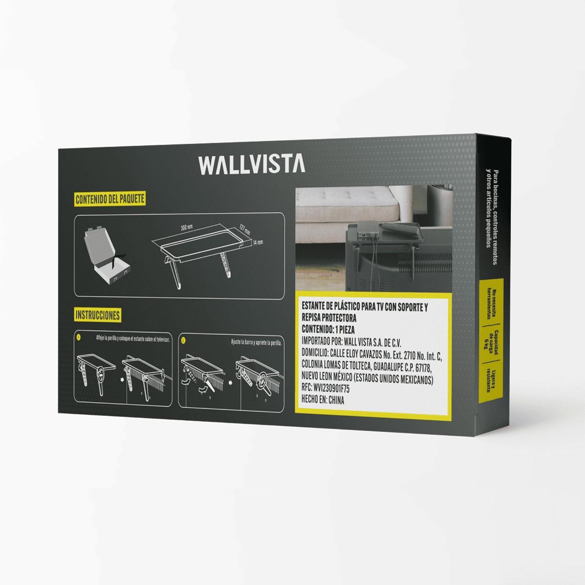 Organiza y libera espacio en tu centro de entretenimiento con nuestro innovador estante tipo soporte para tv. Este diseño único ofrece una solución práctica para guardar controles remotos y otros accesorios justo encima de tu televisor. La instalación es súper sencilla y no requiere herramientas: solo ajusta el tornillo giratorio para fijar el soporte en su lugar. Fabricado con materiales resistentes, soporta hasta 6 kg (13.2 libras). Con unas dimensiones de 30 cm de ancho x 13.2 cm de profundidad (11.8 x 5.2), tiene espacio suficiente para controles, dispositivos para videojuegos y objetos decorativos. Además, cuenta con bordes de seguridad en todos los lados para evitar caídas accidentales.