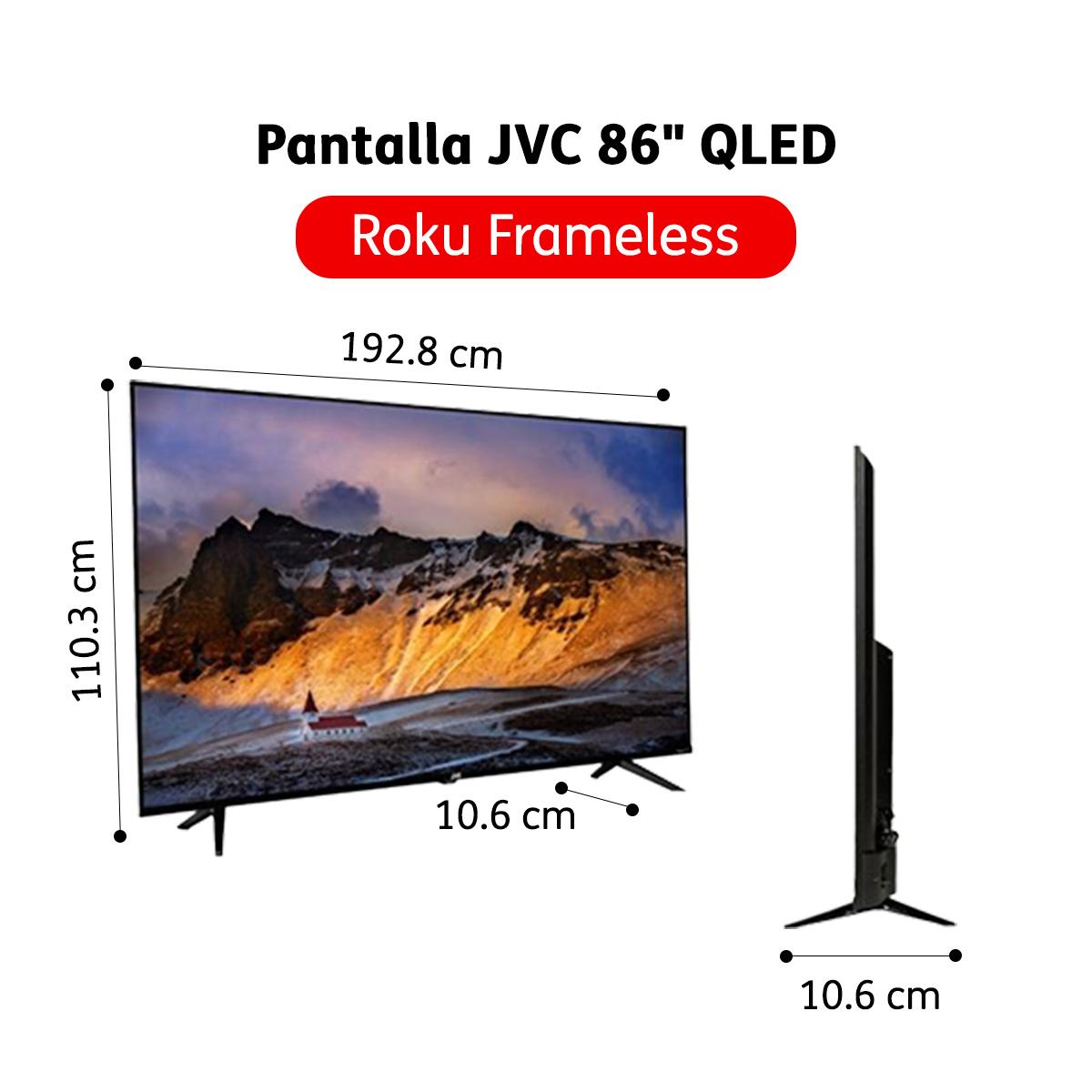 Con la pantalla jvc 86 pulgadas QLED reproduce tonos más precisos y de apariencia natural con un nivel de brillo más realista. Experimente los detalles excepcionales que se merece aprovechando al máximo su televisor. Esta pantalla cuenta con un diseño elegante que se adapta a tu estilo de vida. Convierte tu smartphone o tablet compatible en un centro de comando, con la app de roku puedes editar y agregar nuevos canales. Puedes conectar tus audífonos a tu celular para escuchar tus programas favoritos y disfrutar del contenido de miles de canales y aplicaciones. Funciona con los asistentes de voz más populares y vive una experiencia auditiva única. Conectividad wifi para navegar en la web y disfrutar de tus aplicaciones y programas favoritos. También puedes visualizar tus programas de televisión abierta, para ver todo lo que te gusta sin complicaciones.