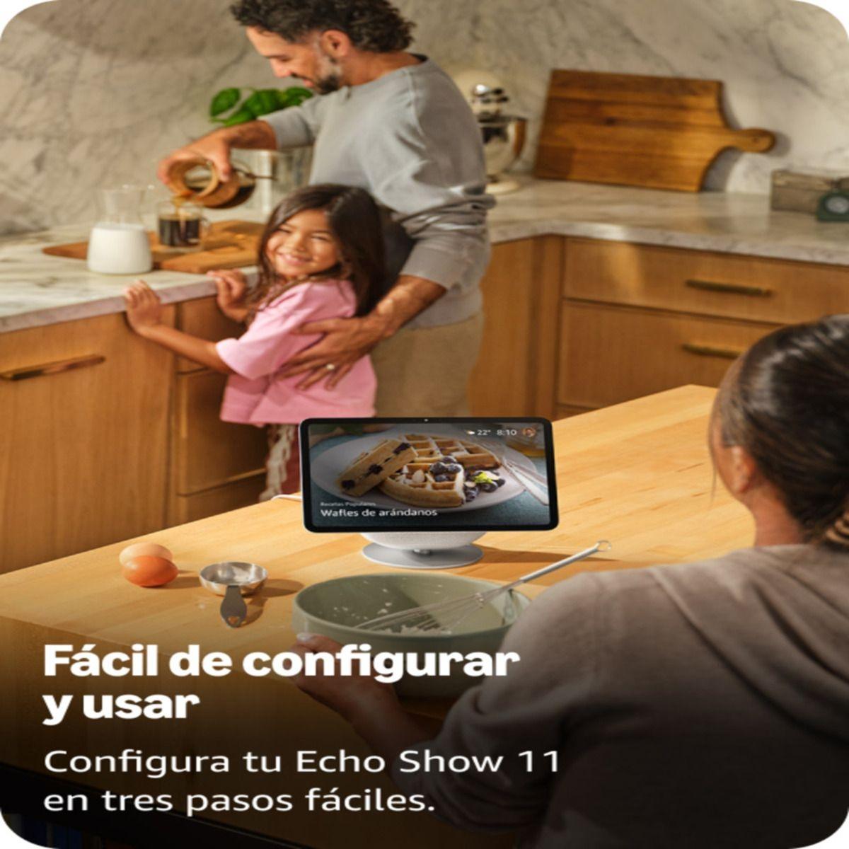 El Amazon Echo Show 11 es la pantalla inteligente ideal para quienes buscan una experiencia más grande, visual y envolvente dentro de su hogar. Diseñado para convertirse en el centro de control inteligente, combina una amplia pantalla táctil Full HD de 11 pulgadas, un potente sistema de audio y la inteligencia de Alexa, ofreciendo comodidad, entretenimiento y conectividad en un solo dispositivo. Incorpora altavoces de alto rendimiento que brindan un sonido claro, equilibrado y con buena presencia de graves. Ideal para reproducir música, podcasts, audiolibros o acompañar tus series y videos favoritos con una experiencia de audio envolvente que llena la habitación. Funciona como un hub visual para tu casa inteligente. Controla luces, enchufes, cámaras, cerraduras y otros dispositivos compatibles desde la pantalla o con comandos de voz. Visualiza cámaras de seguridad en tiempo real, crea rutinas automáticas y gestiona tu hogar de forma sencilla y centralizada.