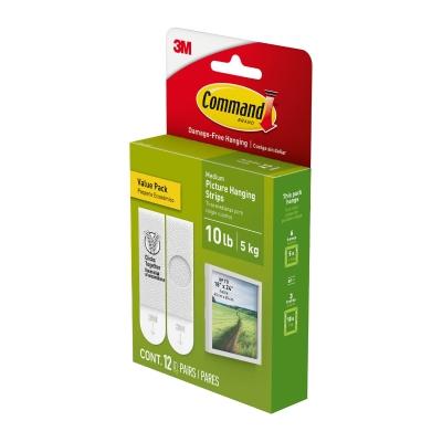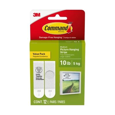 COMMAND TIRAS PARA COLGAR CUADROS, MEDIANAS, BLANCAS, 12 PARES