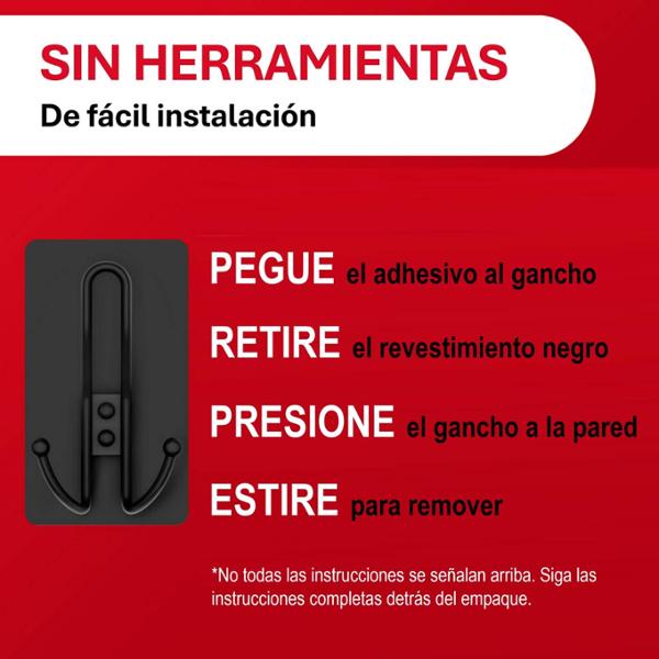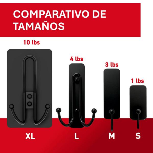 GANCHO ADHESIVO COMMAND EXTRA GRANDE, COLOR NEGRO MATE,1 GANCHO Y 3 TIRAS ADHESIVAS