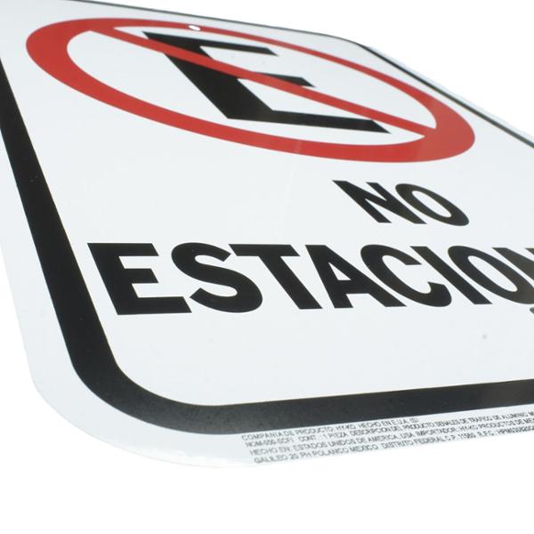 LETRERO DE ALUMINIO PARA PARED "NO ESTACIONARSE" 45.5 X 30.5 CM