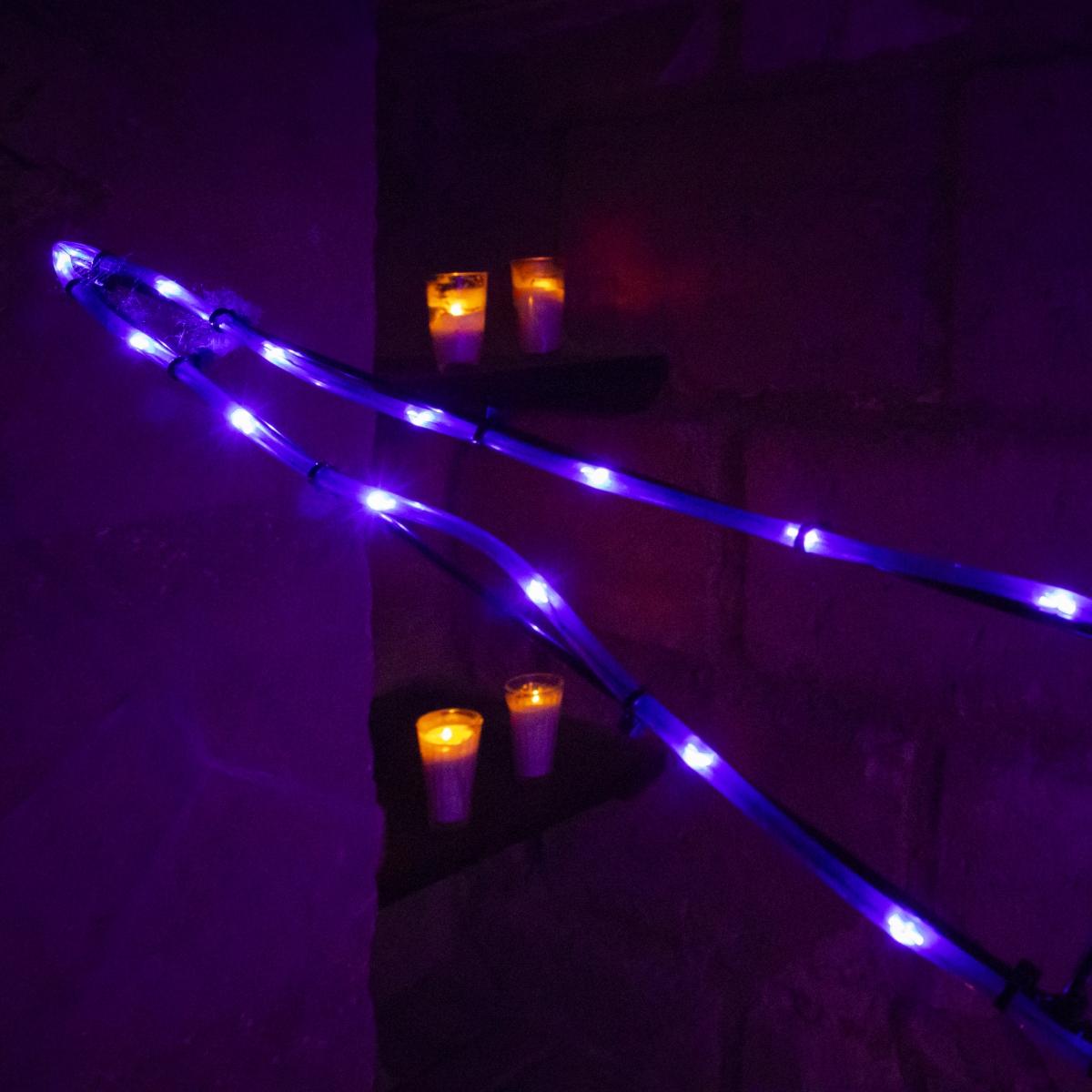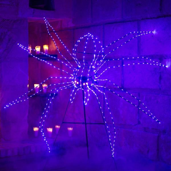 FIGURA DECORATIVA ARAÑA ILUMINADA MORADA 62CM