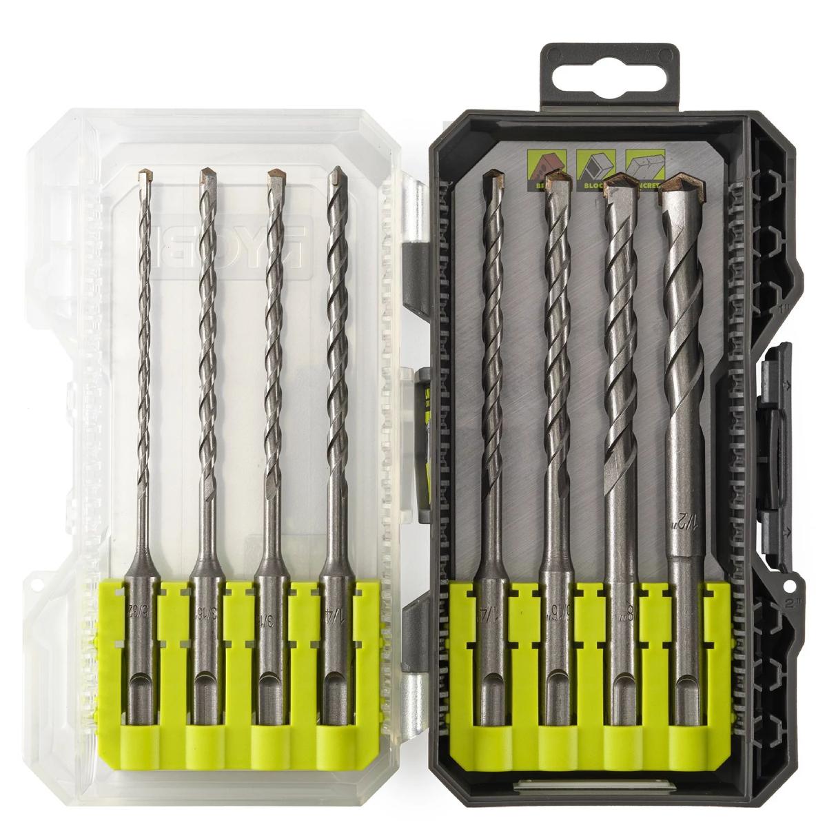 SET DE BROCAS DE 2 CORTADORES SDS PLUS RYOBI (8 PIEZAS)