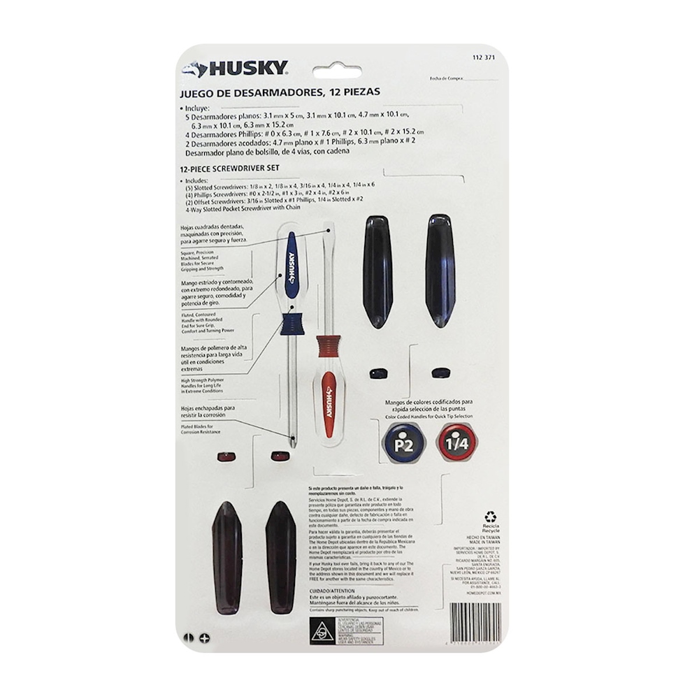 JUEGO DE DESTORNILLADORES DE 38.1 X 21.89 X 2.77 CM ACERO HUSKY 12 PIEZAS