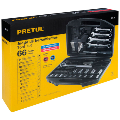 JUEGO DE HERRAMIENTAS PARA MECÁNICO PRETUL 66 PIEZAS