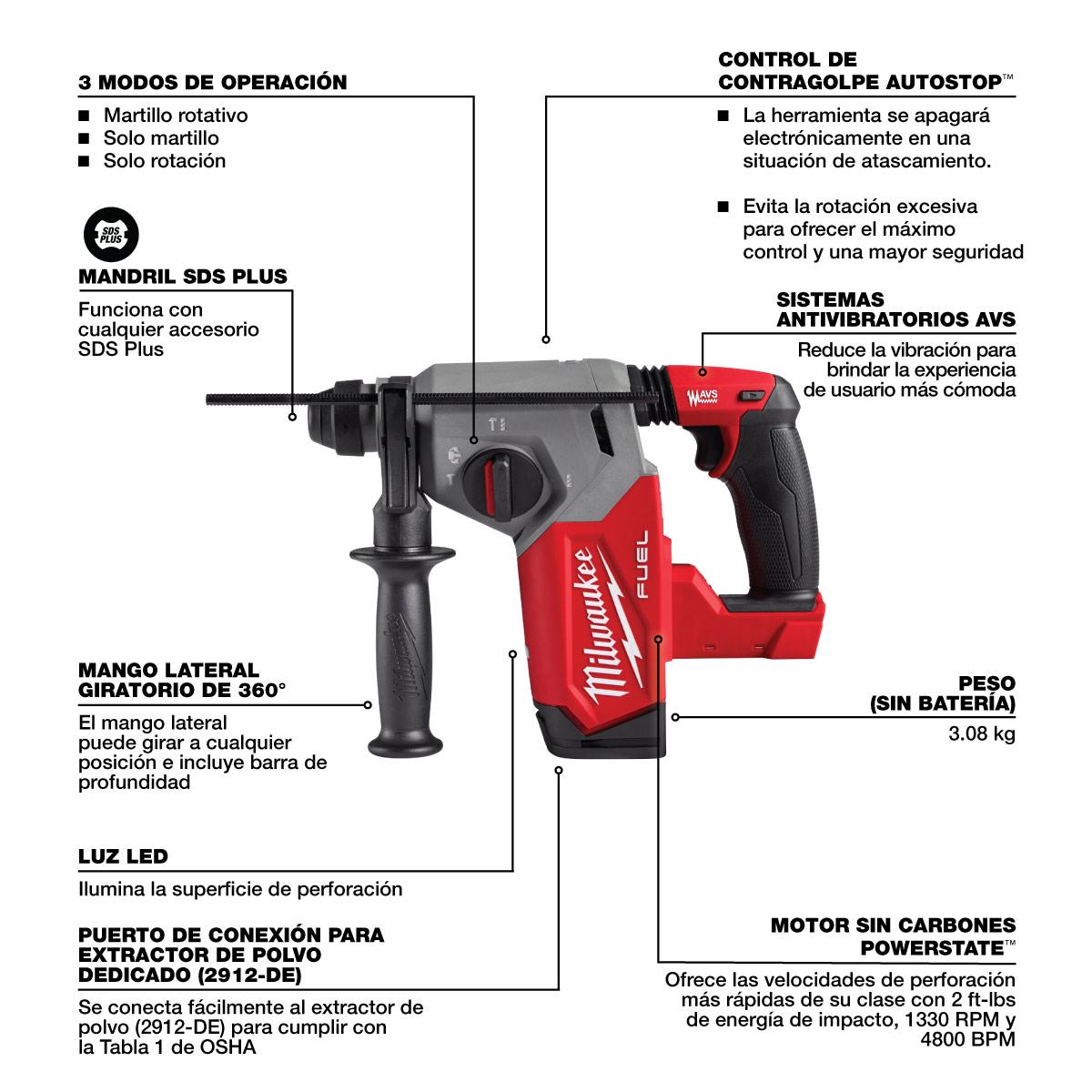 M18 BRUSHLESS FUEL KIT INALAMBRICO ROTOMARTILLO SDS PLUS 18V ION LITIO HERRAMIENTA SOLA