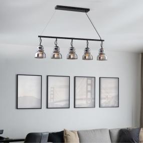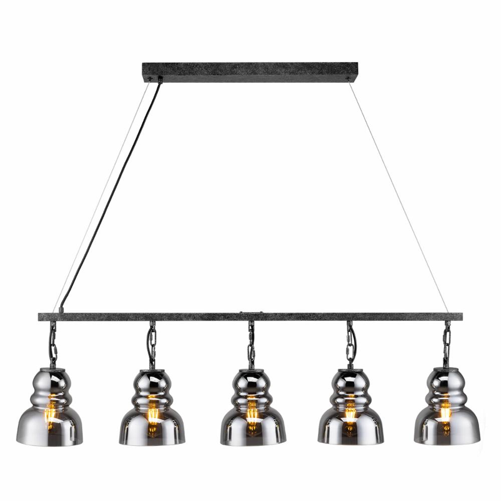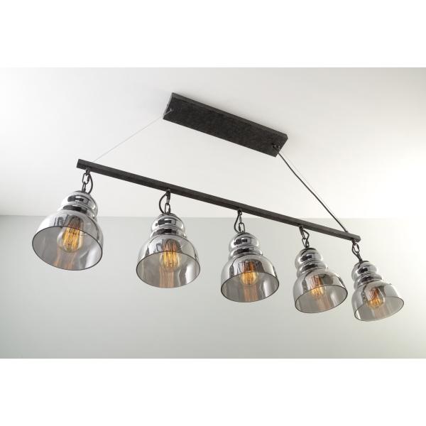 LÁMPARA COLGANTE VINTAGE DE VIDRIO GRIS AHUMADO 5 LUCES