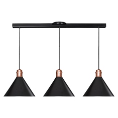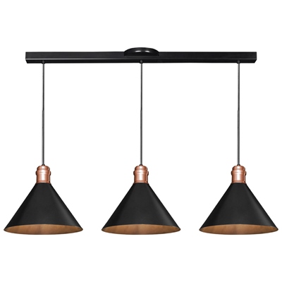 LÁMPARA COLGANTE VINTAGE DE ACERO NEGRO Y COBRE BRILLANTE 3 LUCES MAXXI