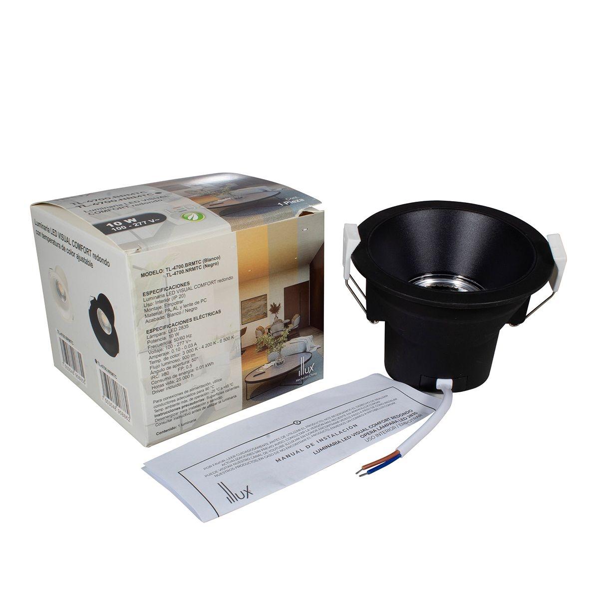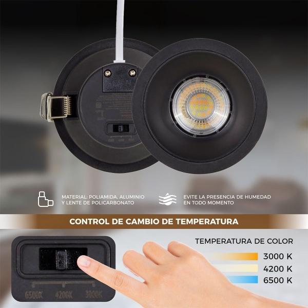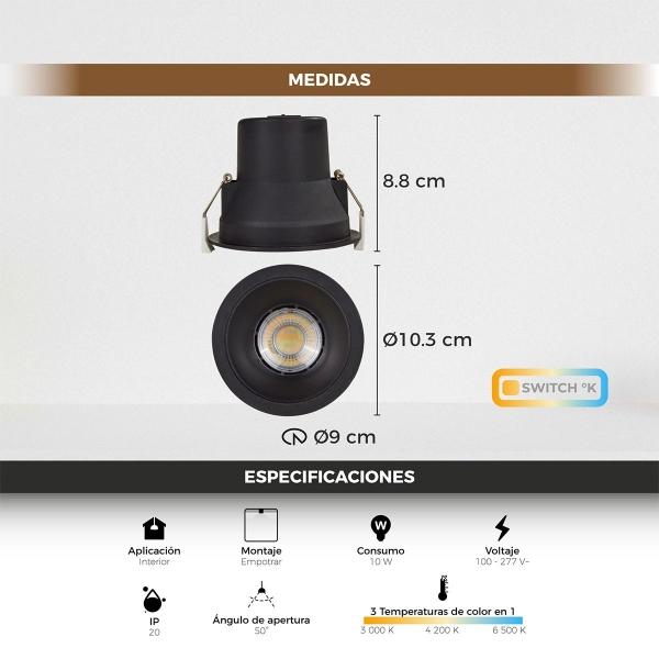 LAMPARA DE EMPOTRAR EN TECHO LED, TEMPERATURA AJUSTABLE, 10W, COLOR NEGRO